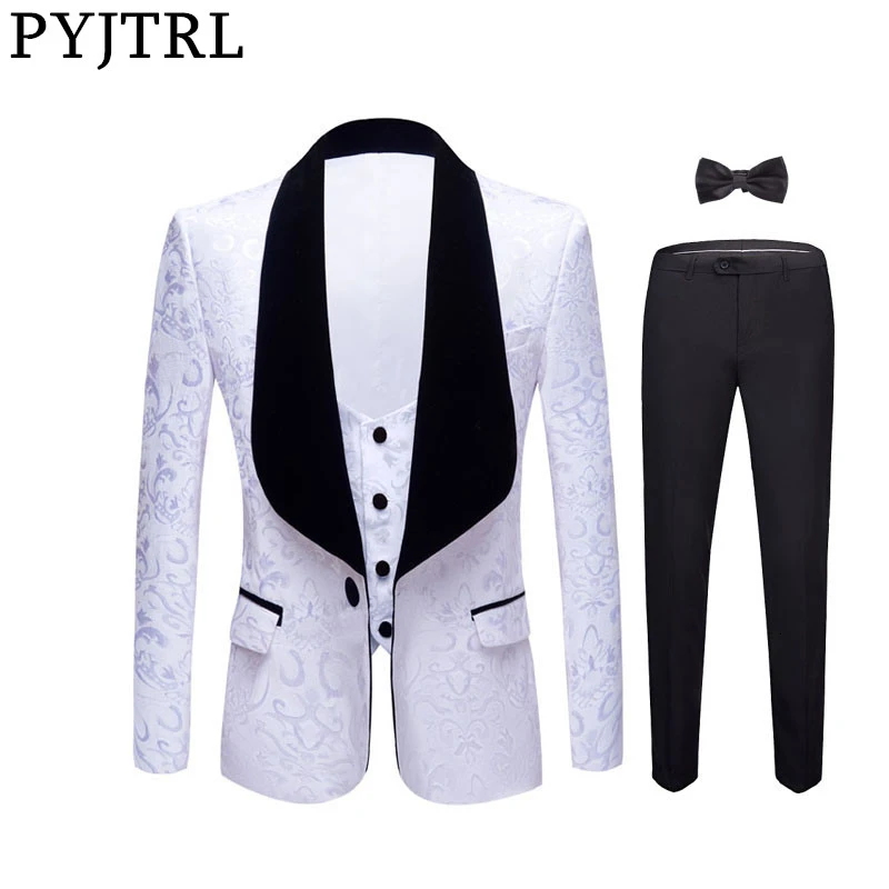 Костюм свадебный мужской из жаккардового смокинга с лацканами, 4 шт., розовый, желтый, черный, красный, чистый белый, шаль для жениха