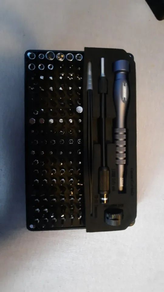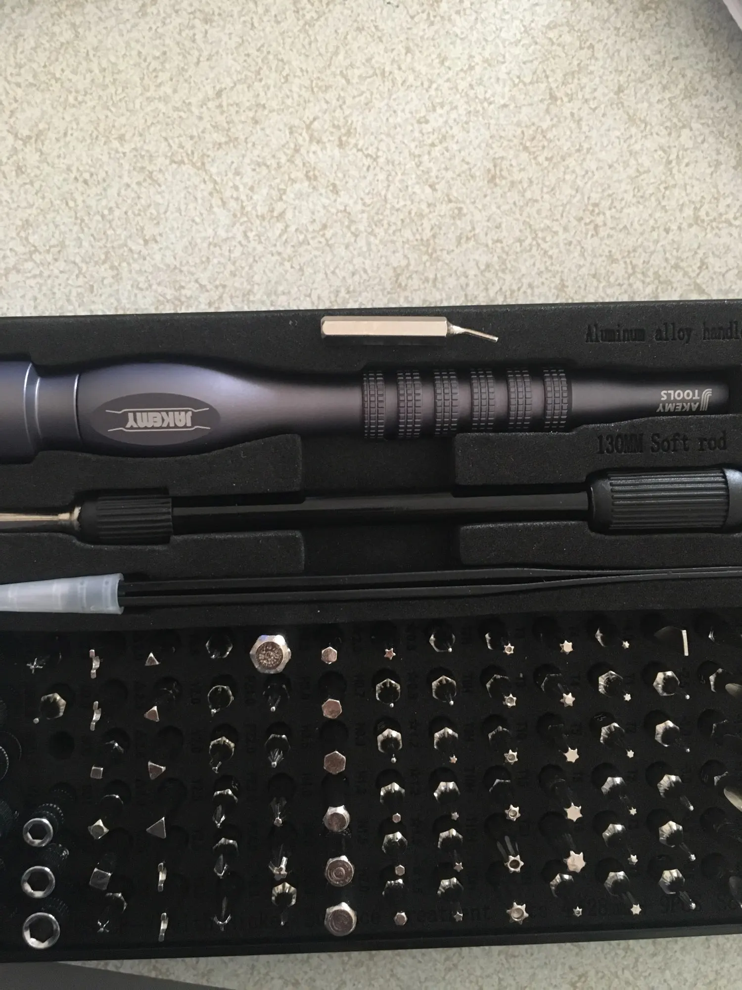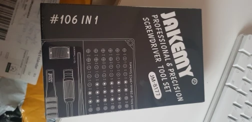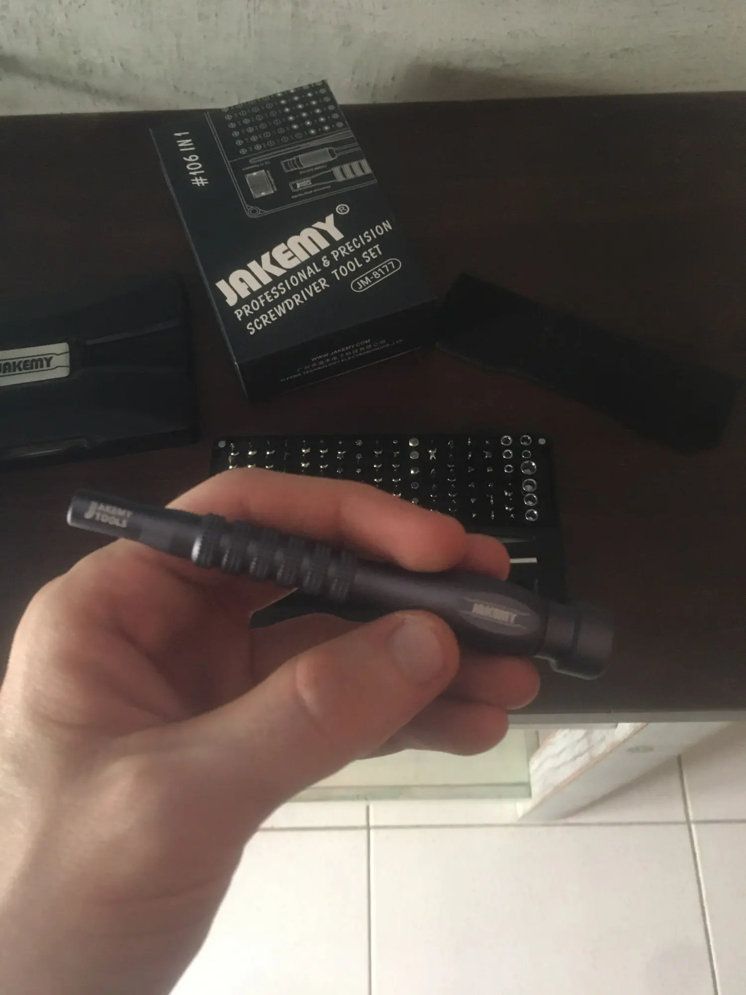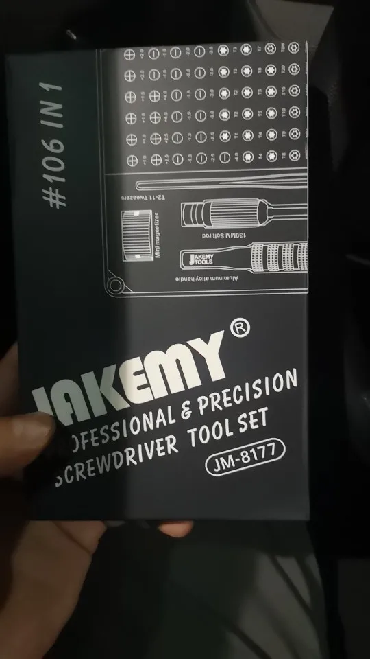 Упаковка была довольно быстрой, очень красиво упакована в пузырчатую фольгу и коробку Коробка на ощупь прочная, магниты хорошие и прочные Логотип «jakemy» кривой, но это относительно легко фиксируется просто и прилипает и приклеивается обратно коробка кажется хрупкой, я думаю, что он сломается, если hitor, если он упадет, время покажет Отвертка хорошо обработана на ощупь, она около 12 см в длину, все в порядке с расширением, которое полностью 12 см в длину, ощущается дешево, но это сделает работу У них есть волшебники, которые держат биты довольно сильно Есть в общей сложности 102 бит ведьмы около 1/3 являются запасными частями torx t3 присутствует в коробке 3 раза, например, я думаю, что это должно быть указано, что это применимо для более стандартных бит, например, Phillips И у Аллена есть некоторые запчасти Все в коробке пинцеты отличного качества и отлично сидят в руке И, наконец, «мини магнетизатор», это дешевый способ, слишком дешевый, плохо выглядит, но, надеюсь, он будет работать