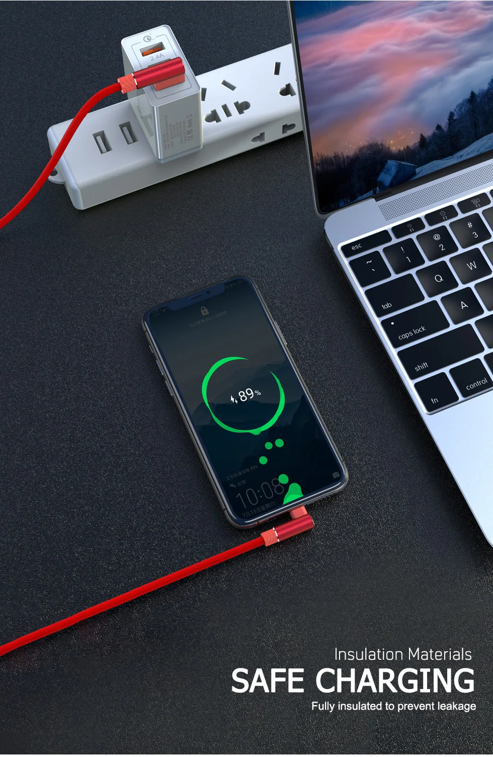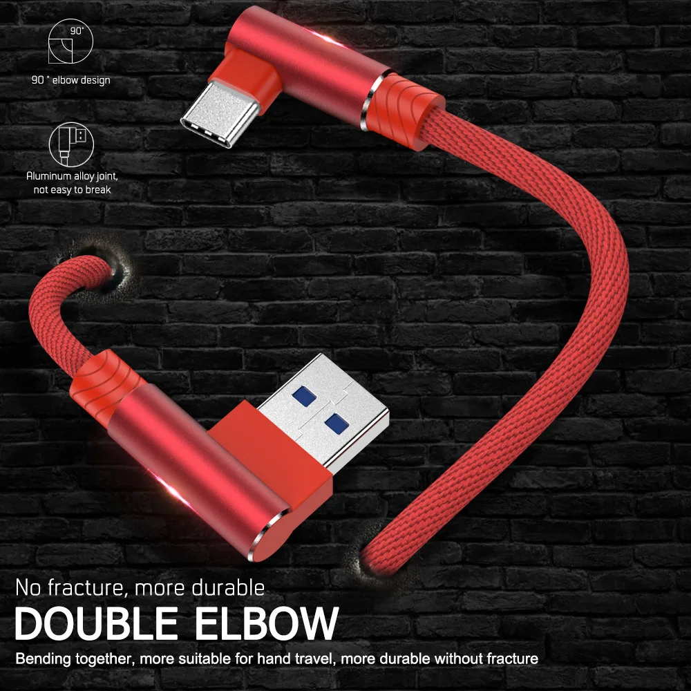 L 90 градусов USB C кабель для Samsung S9 S10 Plus Quick Charge 3,0 Прямоугольный USB Type C зарядный кабель для передачи данных для игровой USB-C