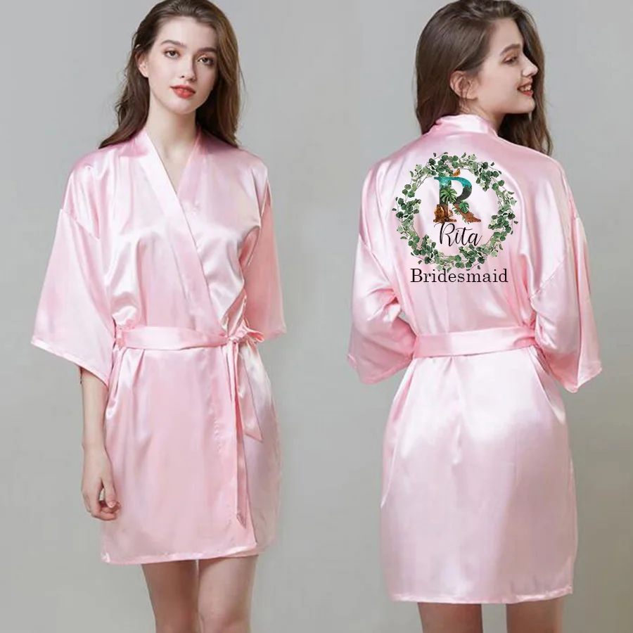 Свадебный Атласный халат, индивидуальное имя, цветочный принт