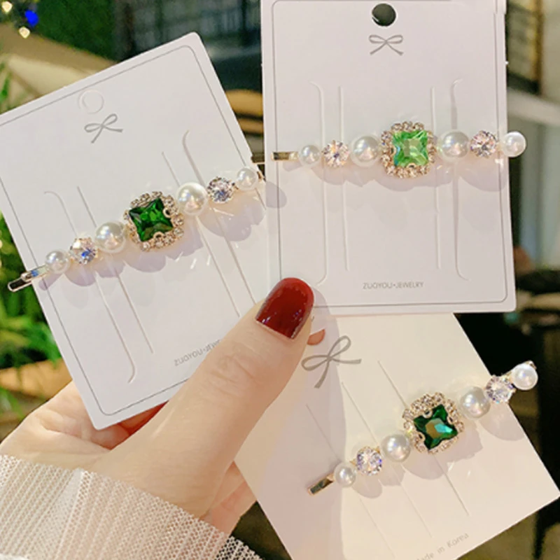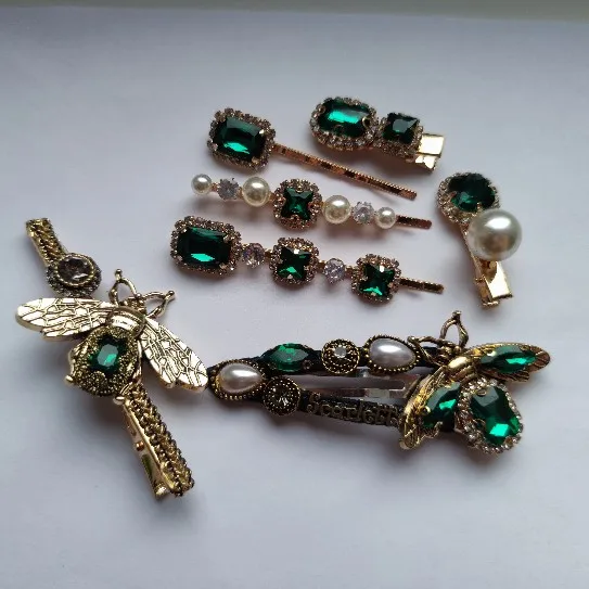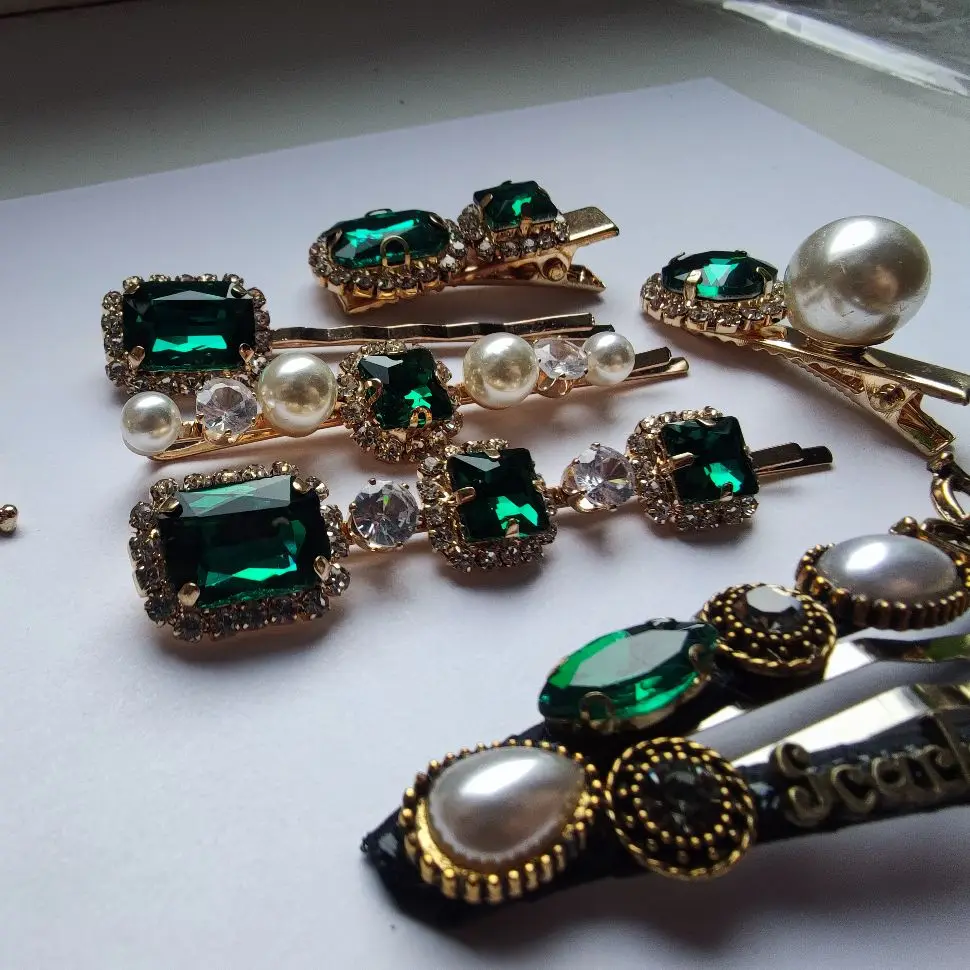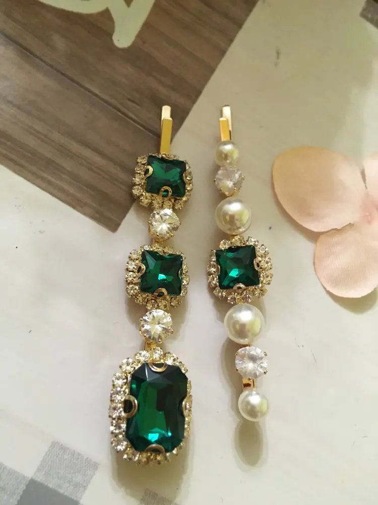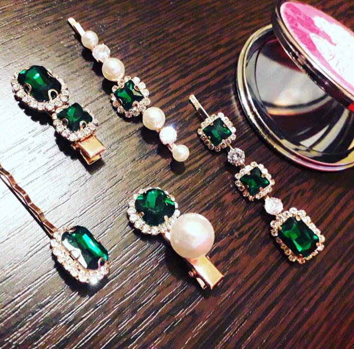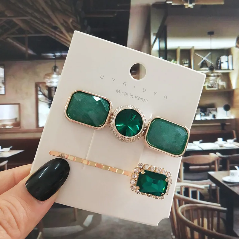 Набор женских заколок для волос, ювелирные изделия, модные аксессуары для волос с зелеными кристаллами, Роскошная искусственная Шпилька для девочек, подарочные украшения