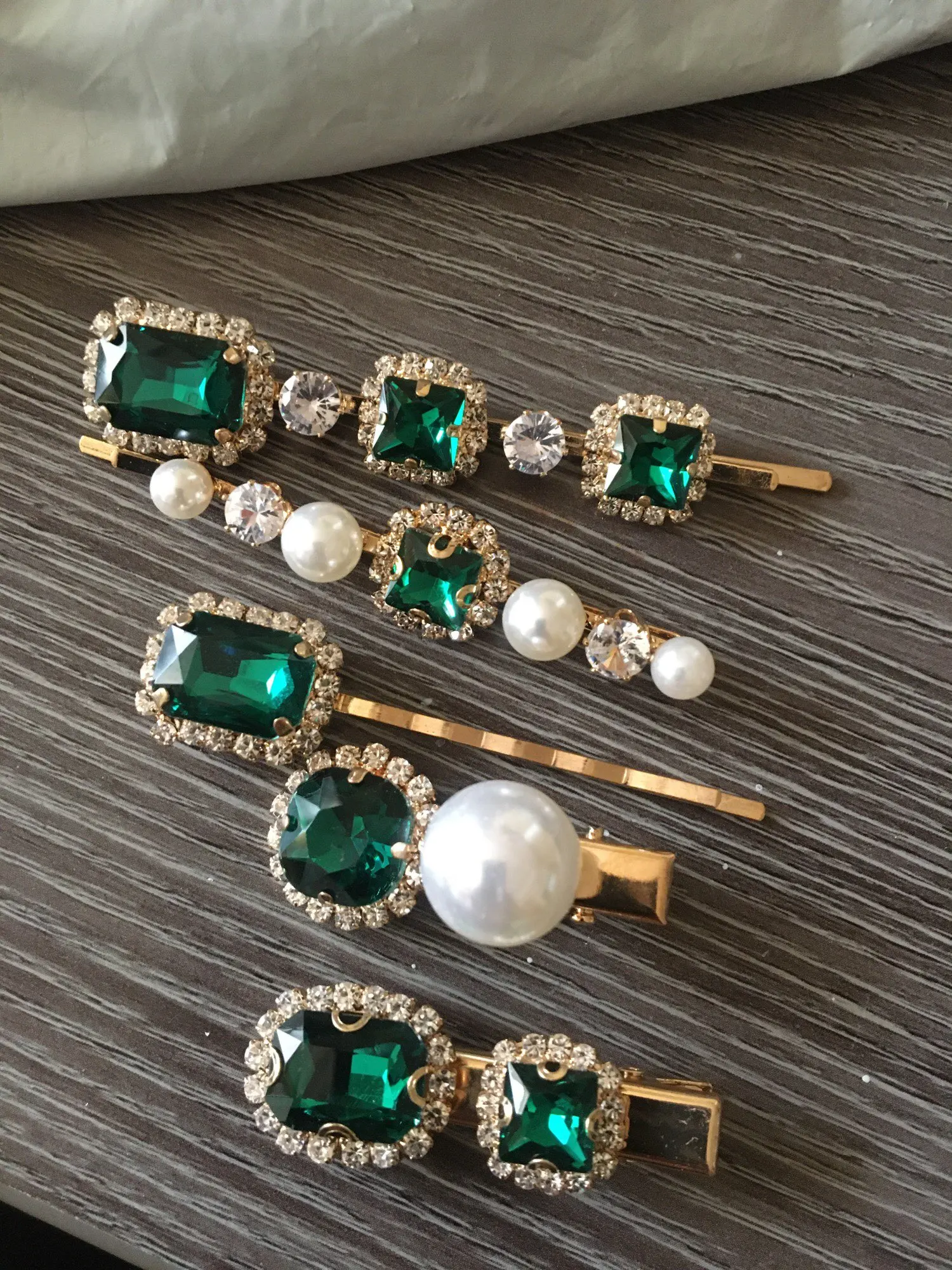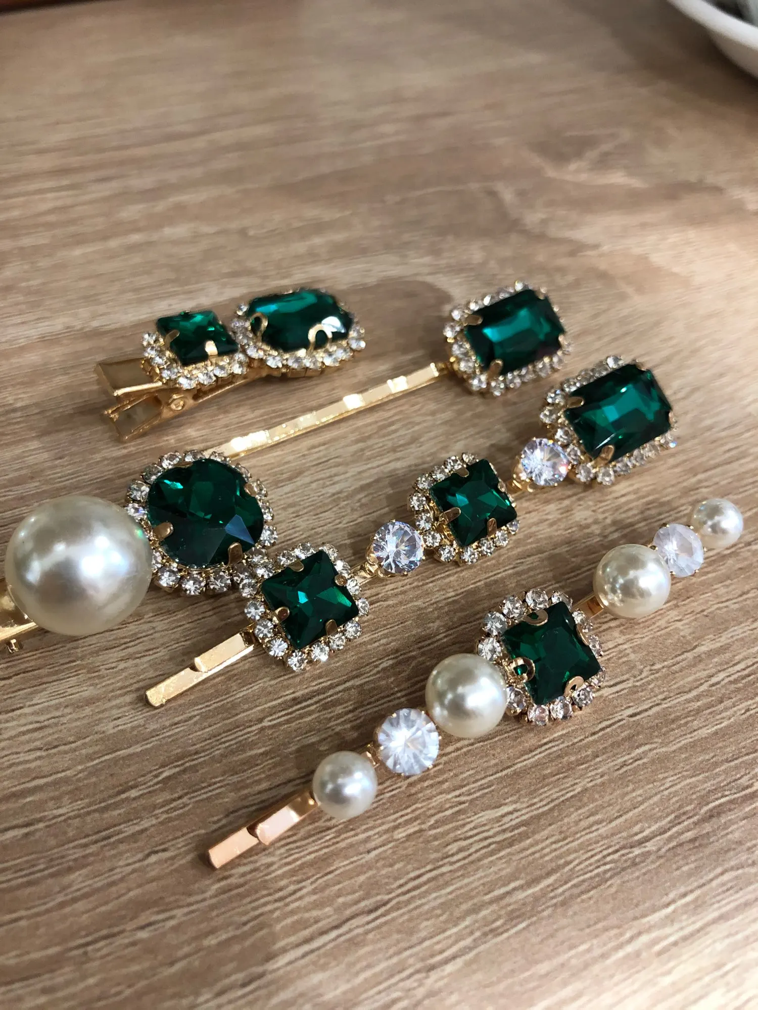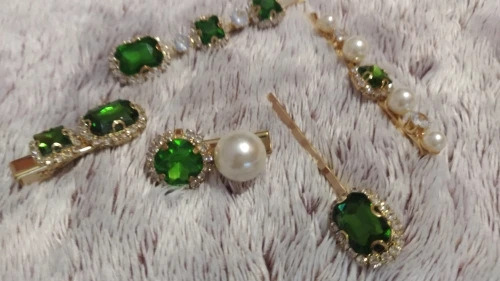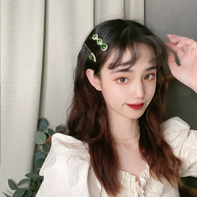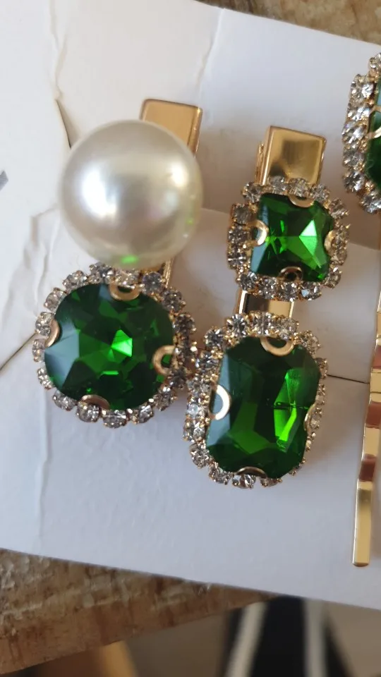 Набор женских заколок для волос, ювелирные изделия, модные аксессуары для волос с зелеными кристаллами, Роскошная искусственная Шпилька для девочек, подарочные украшения