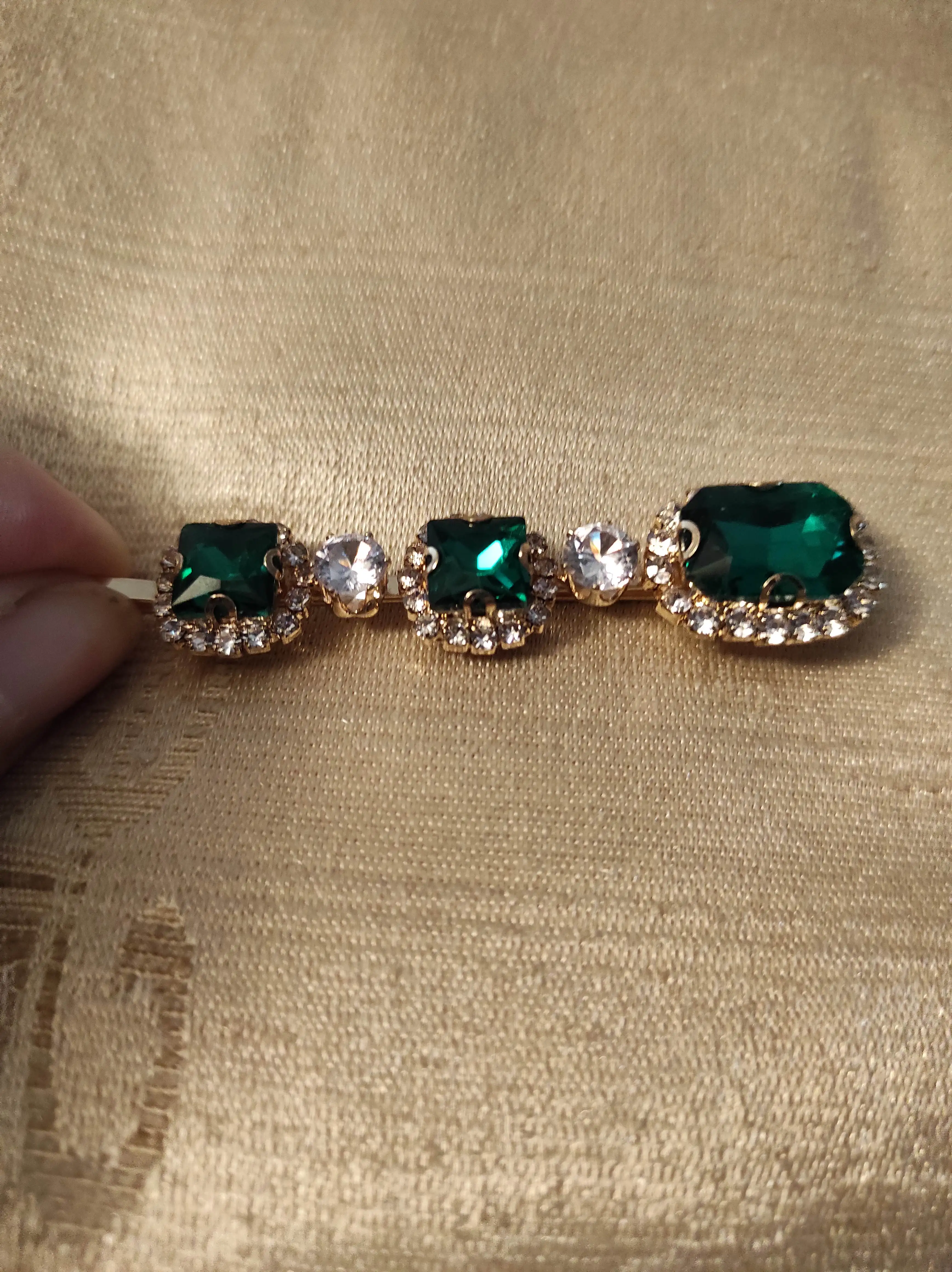 Отличное качество, камни хороши, А клипсы хорошо держат волосы. Нижнее белье золотого цвета не слишком желтое. Очень элегантный, пригодный для украшения простого образа.