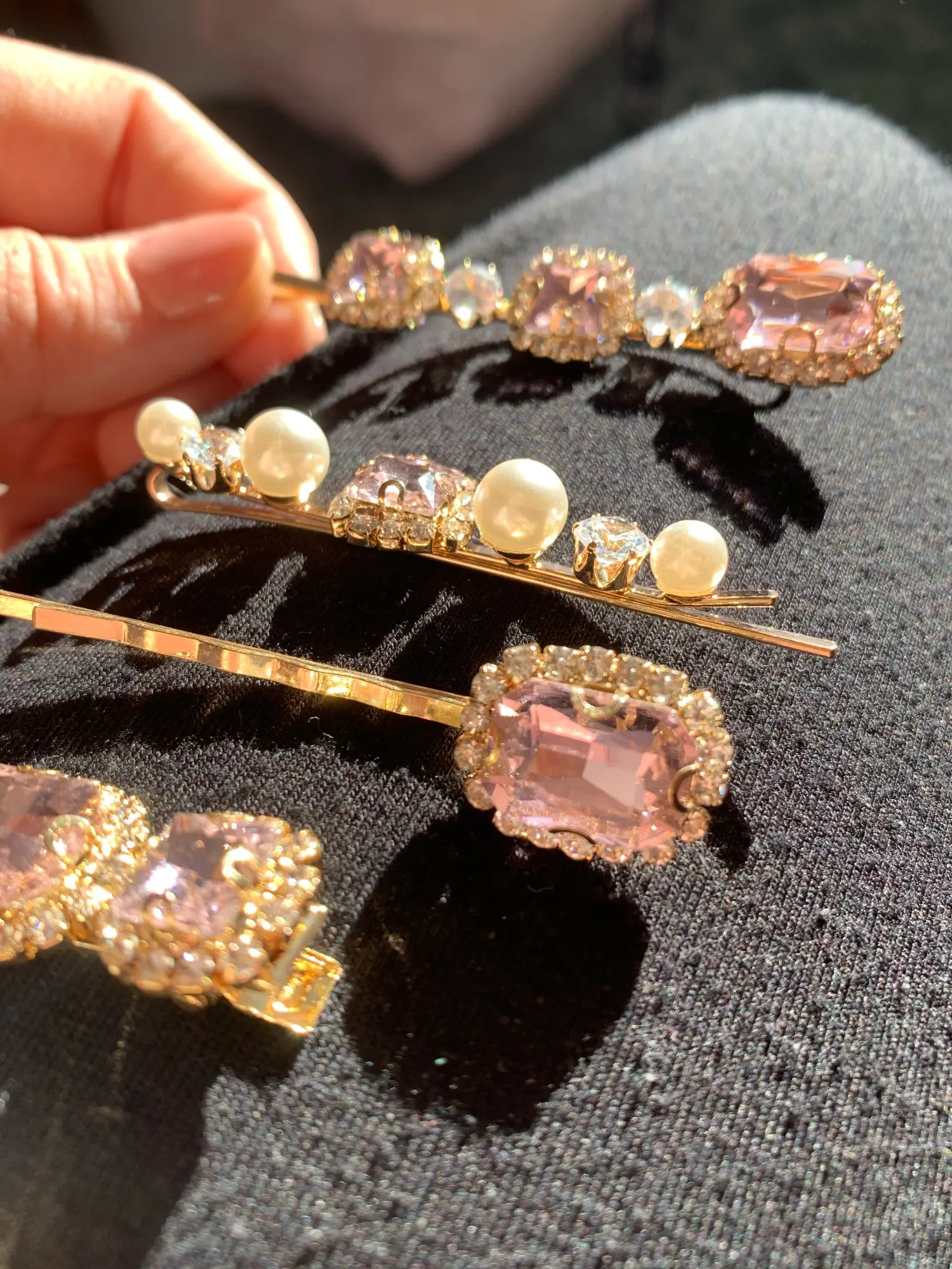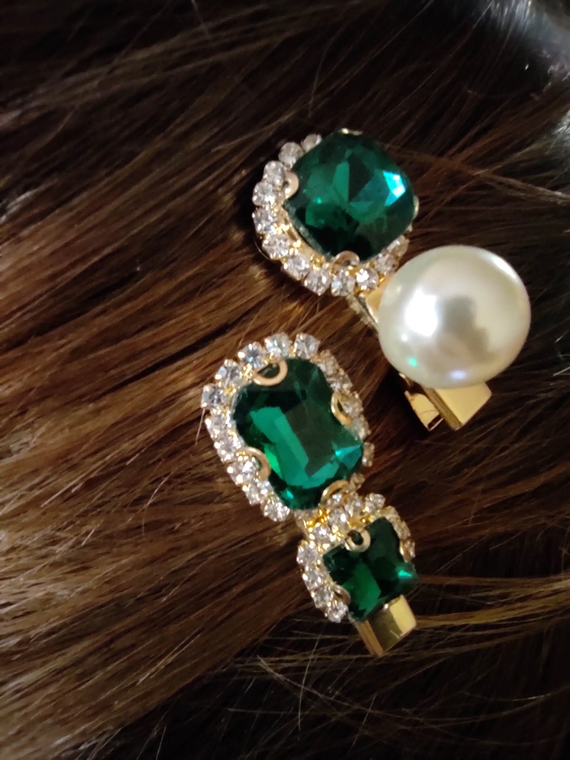 Прекрасные заколки, камушки закреплены хорошо, выглядит очень стильно, красивый аксессуар, рекомендую Особенно на тёмных волосах пушка