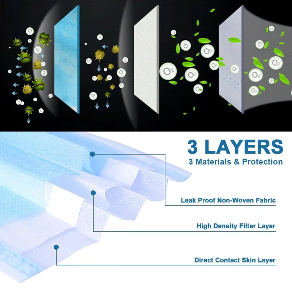 Параметры продукта: Материал: Нетканая ткань Подходящий сезон: весна, лето, осень, зима Цвет: синий Стиль маски: Тип уха Размеры: один Размеры Сфера применения: Личная защита Количество: 10/20/50/100/200 шт Характеристики продукта: 1. Изделие хорошего качества, ткань мягкая, удобная в носке, дышащая и не вызывает давления на лицо. Можно носить в течение длительного времени 2. Изготовлен из экологически чистого материала, влагостойкий, не раздражающий, мягкий и удобный. 3. Процесс бесшовной вязки, идеальный дизайн, когда вы носите его, он легко помещается в лицо. 4. Три сложения дизайна, больше дышащего пространства на лице. Эластичная петля для ушей легко носить и не давит на уши. 5. Может обеспечить некоторую защиту от пыли, автомобильных выхлопных газов, пыльцы и т. Д. Защитить ваше здоровье. 6. Идеально подходит для маникюрного салона или любых других областей, где может потребоваться защита, таких как самолет, поезд и т. д. 7. Отличный выбор для вас или вашей семьи. Как носить маску: 1. Закройте рот и нос и Повесьте два боковых ремня на уши 2. Фиксация моста носа в соответствии с формой носа предотвращает загрязнения воздуха от входа. 3. Пожалуйста, потяните маску к нижней челюсти, чтобы немедленно предоставить трехмерное дышащее пространство.