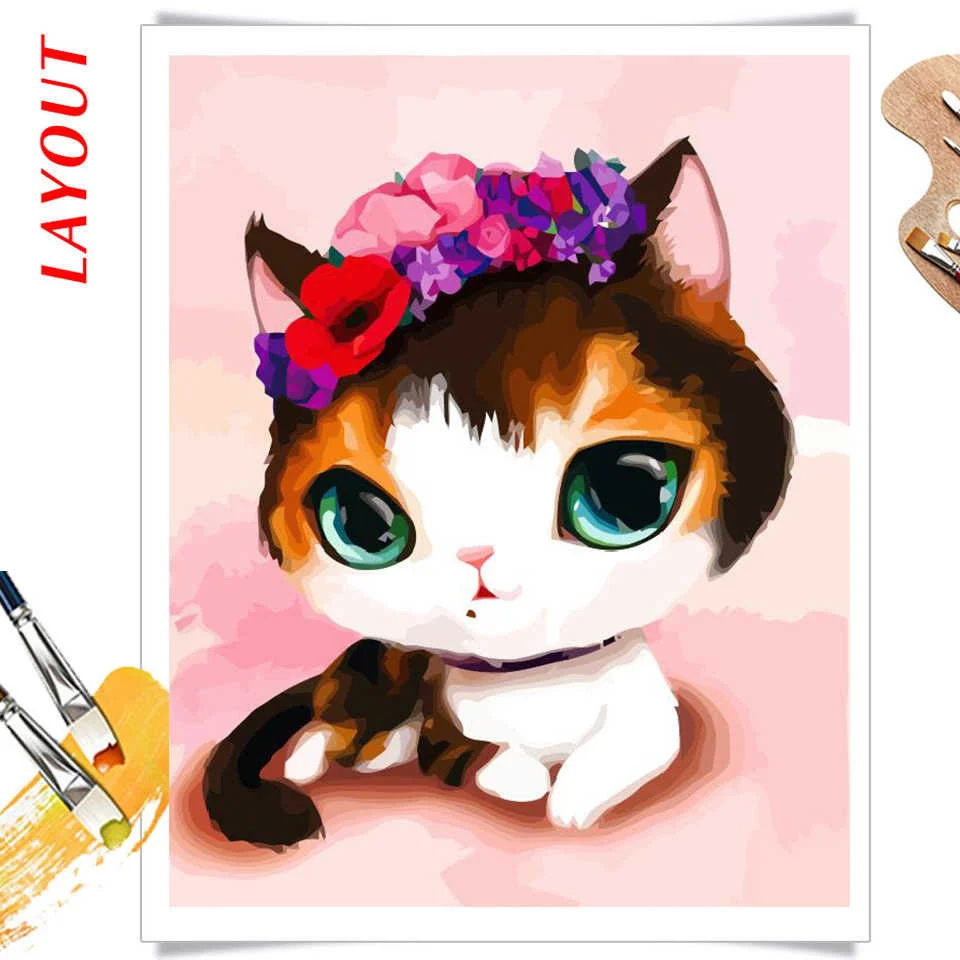 Картина AZQSD по номерам кошка Arcylic картина маслом по номерам животное Ручная Краска Набор Холст DIY без рамки украшение