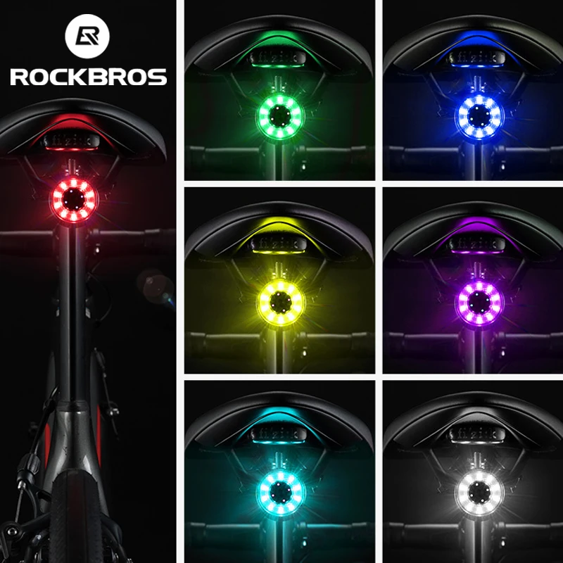 Задний светильник для велосипеда ROCKBROS Waring, с USB-зарядкой, водонепроницаемый, с двойным кронштейном, 7 цветов, велосипедный светильник онарь, Аксессуары для велосипеда