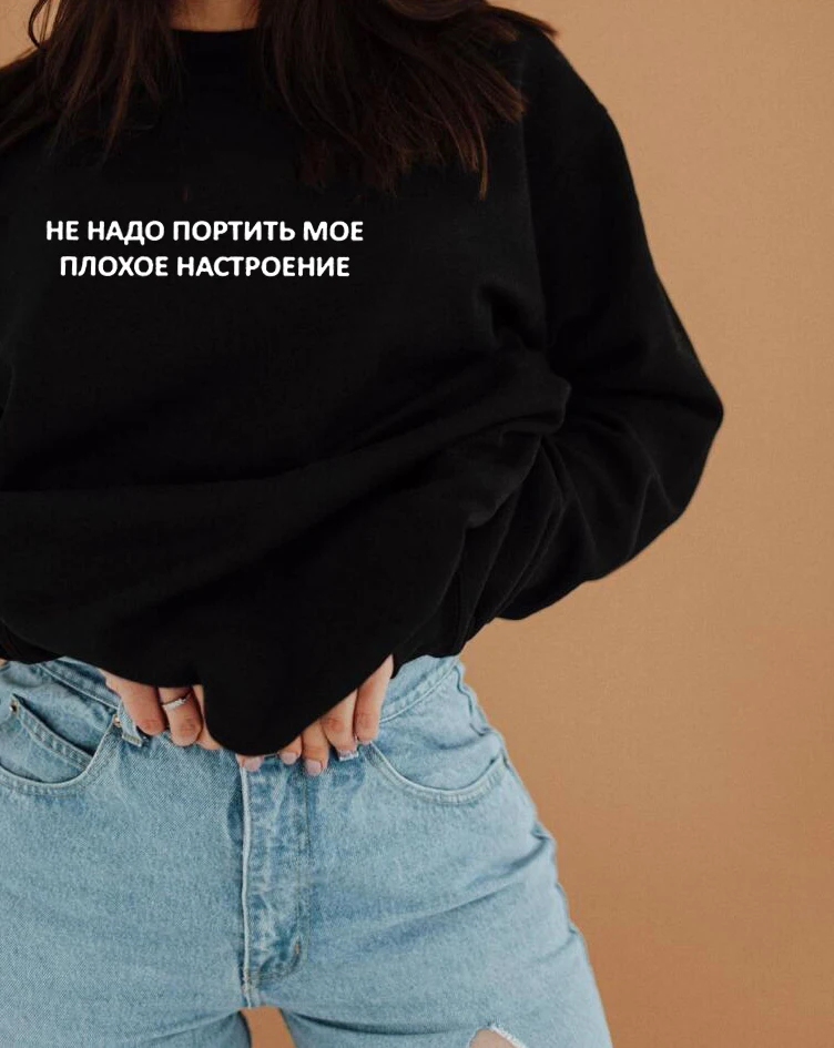 Женский Черный свитшот с надписями на русском языке, повседневный в...