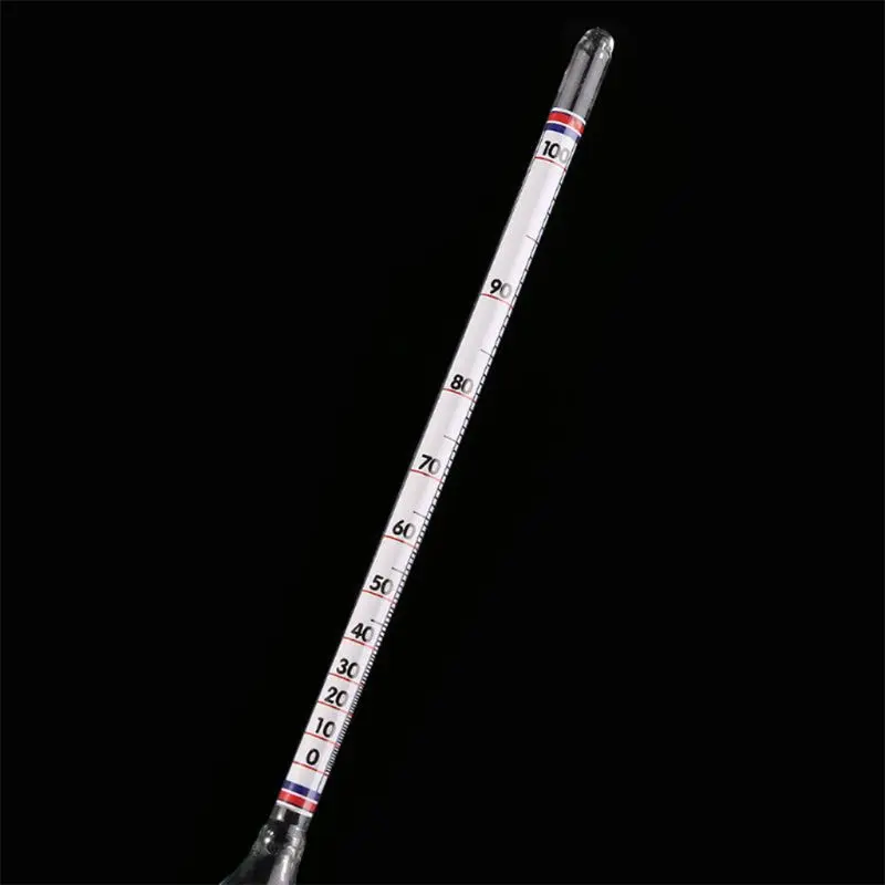 Похож на пивоваренный Ареометр, но измеряет в другом диапазоне (0-100% спирта). Использование спиртометра очень прямое. Вылейте образец s pirit, который нужно протестировать, в высокий стеклянный или высокохимически устойчивый пластиковый цилиндр, оставляя достаточно места для спиртометра, чтобы разогнать жидкость.
