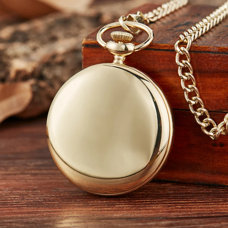 Светящиеся золотые кварцевые карманные часы с гладкой прозрачной крышкой циферблат с римскими цифрами Серебристые часы ожерелье на цепочке Мужская подарочная коробка