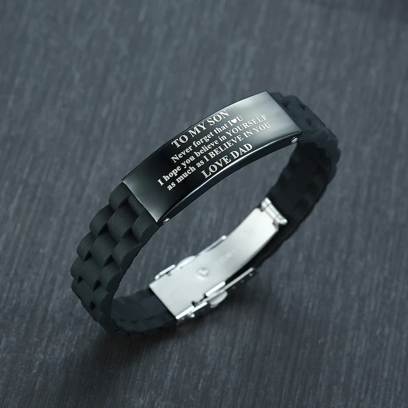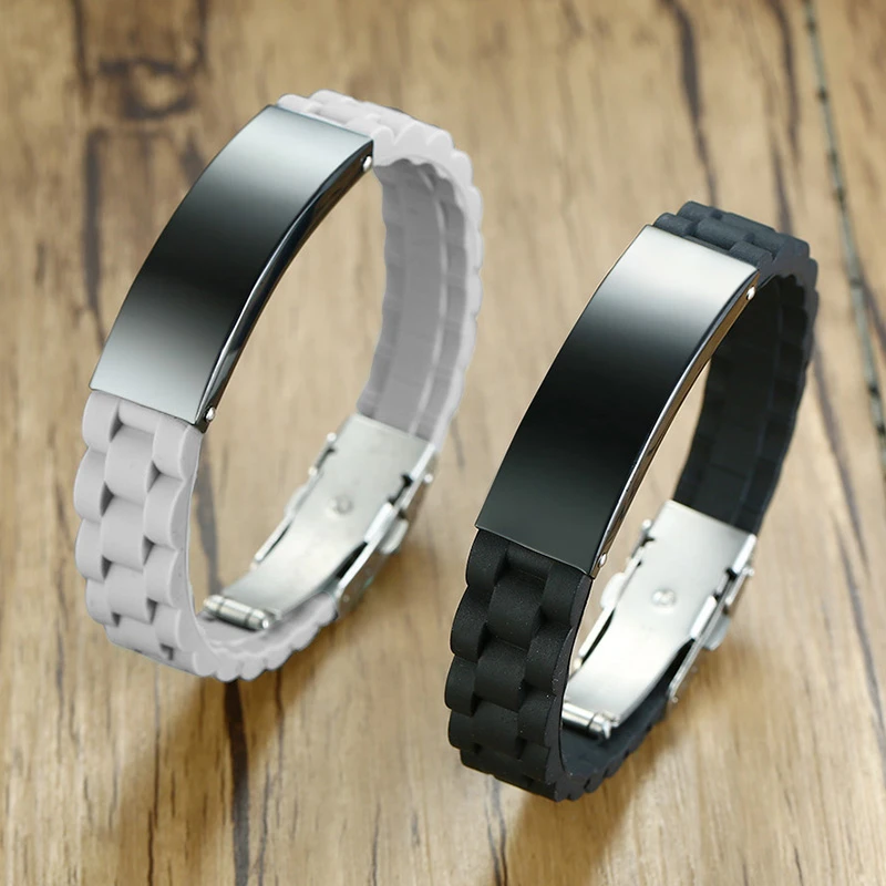 Мужские и женские силиконовые браслеты с гравировкой на заказ, браслет из нержавеющей стали в стиле панк, индивидуальное ювелирное изделие, подарок для папы, сына
