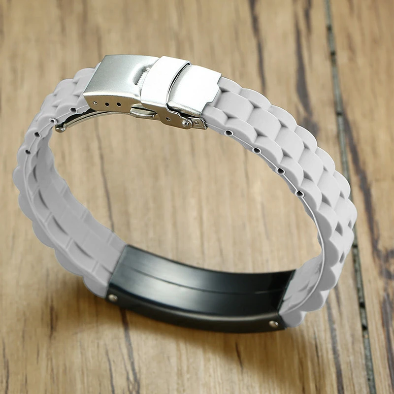 Силиконовые браслеты для мужчин и женщин, черного и серого цвета, из нержавеющей стали