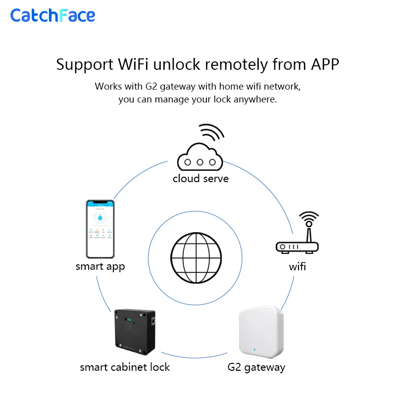 Работайте со шлюзом G2 с помощью домашней сети Wi-Fi, вы можете управлять или разблокировать замок в любом месте (Его можно разблокировать даже за границей ..) Шлюз не нуждается в установке, может использоваться после подключения к источнику питания (Пожалуйста, обратите внимание, что шлюз нужно покупать отдельно, вы можете нажать на картинку ниже, чтобы купить.)