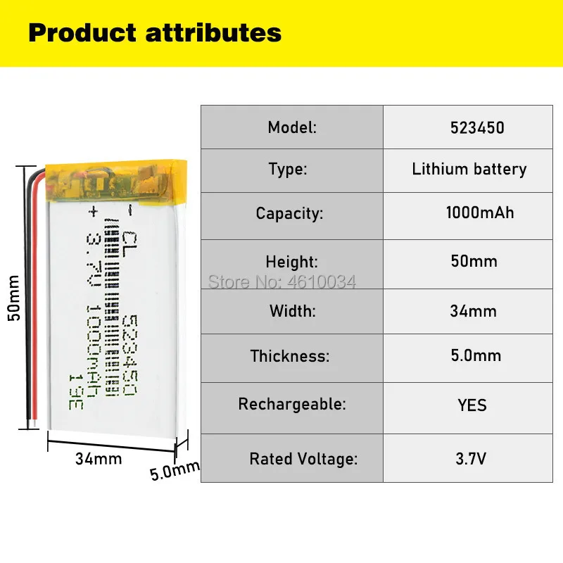 Литий-ионные полимерные аккумуляторные батареи 1000 мАч 3,7 в 523450 для смартфона DVD MP3 MP4 MP5 светодиодсветодиодный лампа bluetooth гарнитура