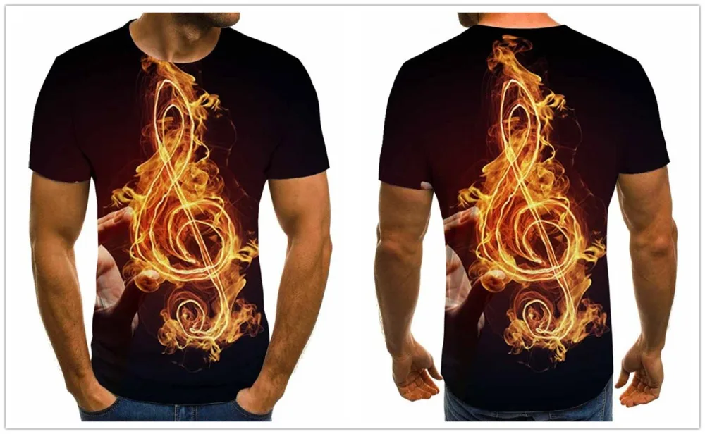 Модная мужская футболка с 3D-принтом музыкальных символов, повседне...