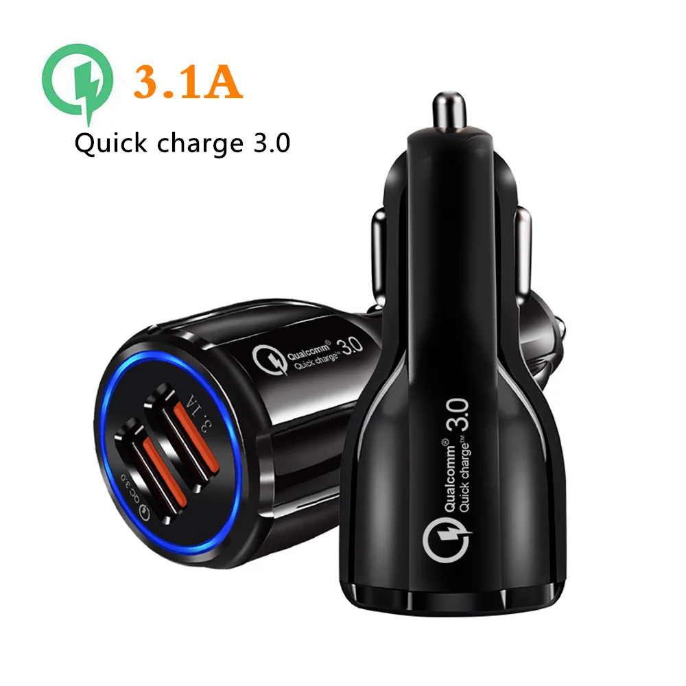 Автомобильное зарядное устройство Quick Charge 3,0 с двумя USB-портами, автомобильное зарядное устройство с прикуривателем для Samsung, Xiaomi, iPhone, автомобильные зарядные устройства с выходом 3,1 А