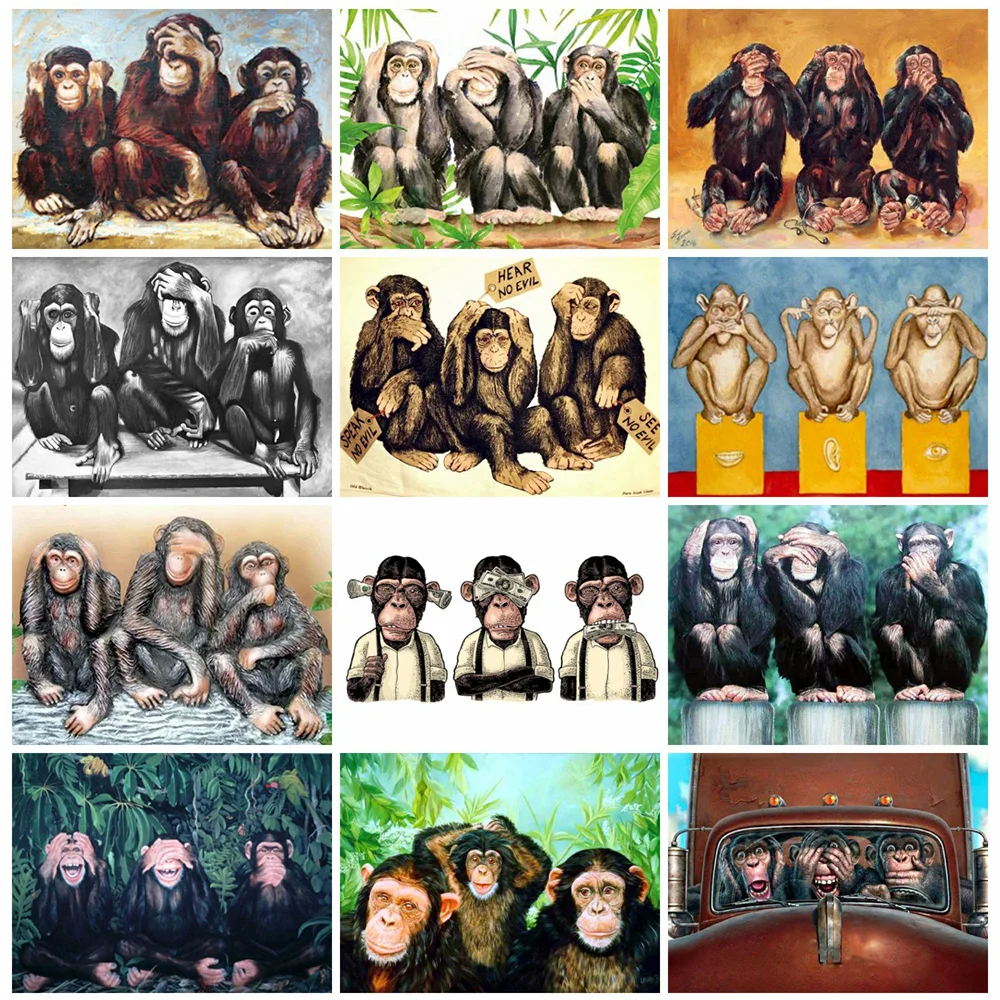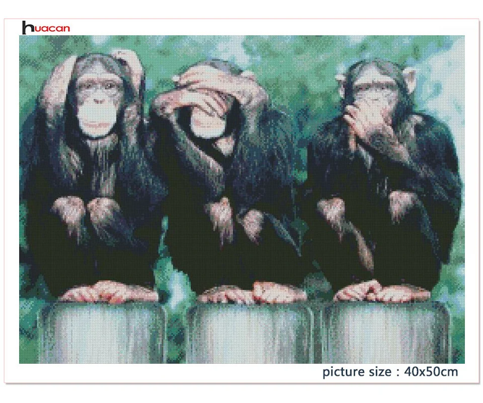 Huacan алмазная мозаика 5д обезьяна картины из страз алмазная вышивка животные картины декор для дома