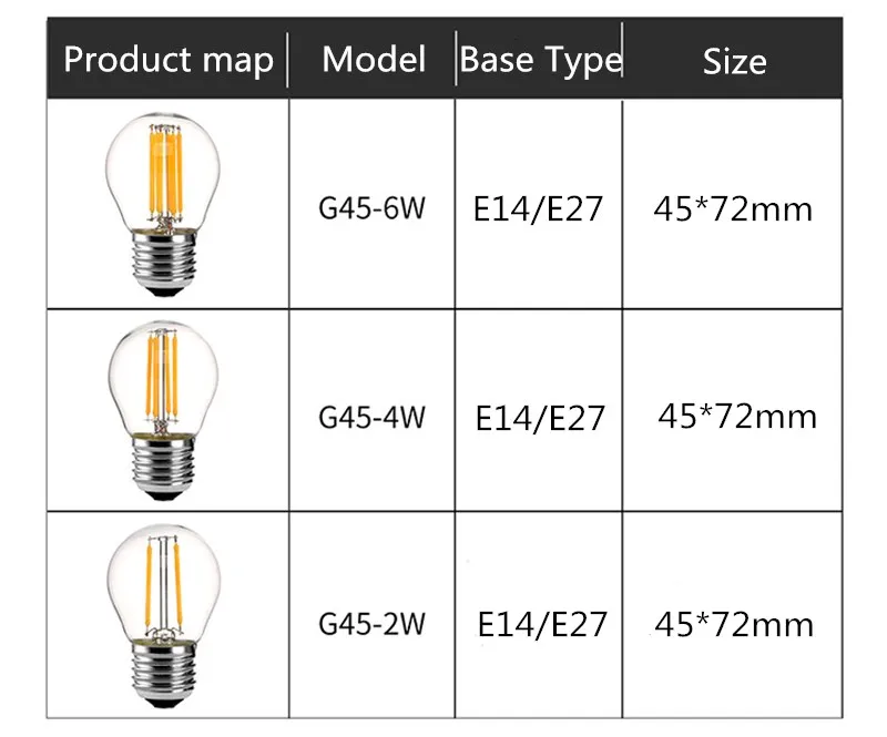 1 шт. G45 супер яркий Ретро светодиодный нити светильник E27 E14 2 Вт, 4 Вт, 6 Вт, 110V 220V G45 Clear