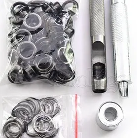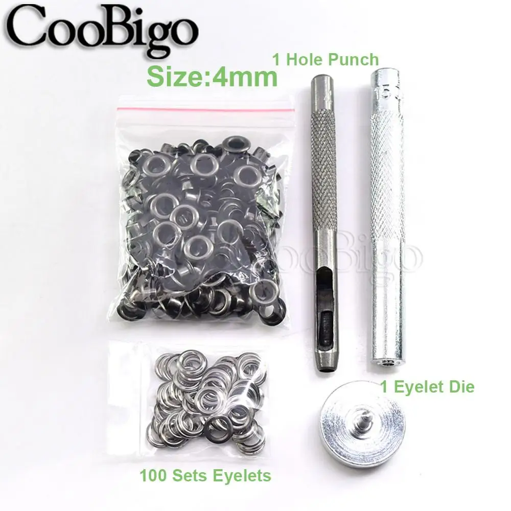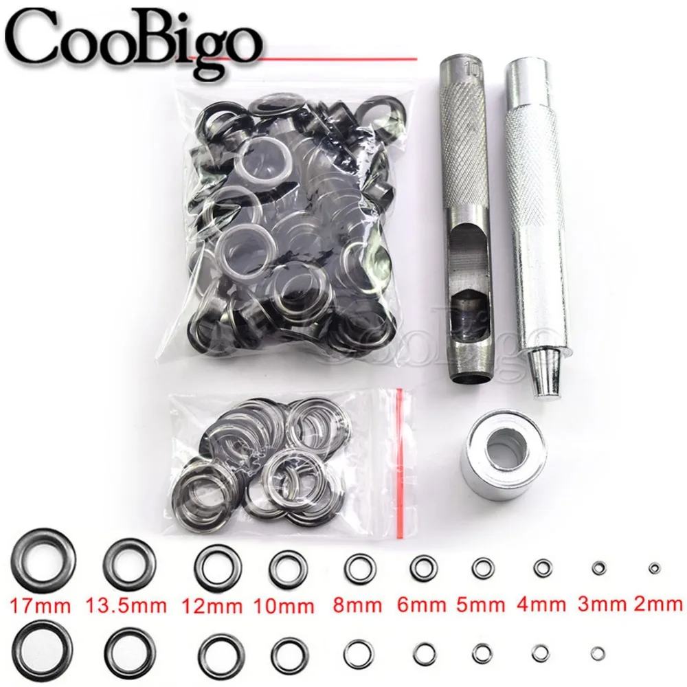 Набор инструментов для ушко и дырокола из черного никеля для кожевенного ремесла, одежды, обуви, сумки на ремне, 100, 2-17 мм, баннер с Люверсами