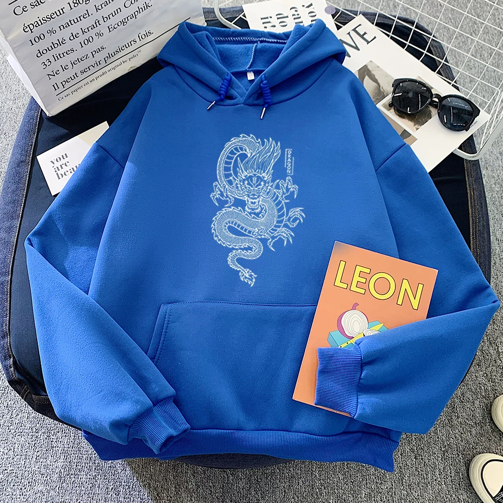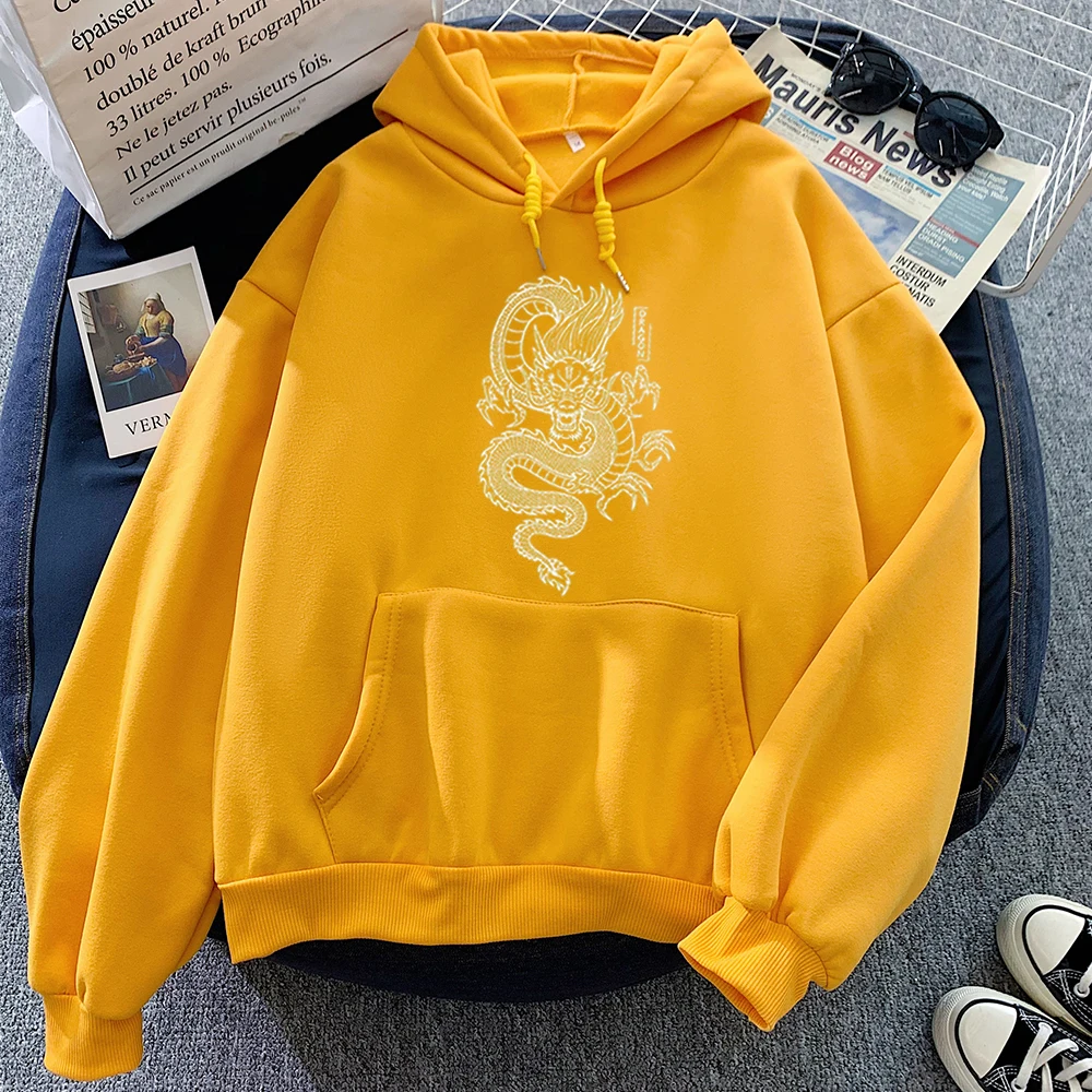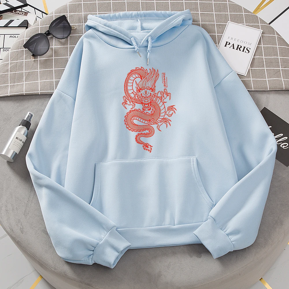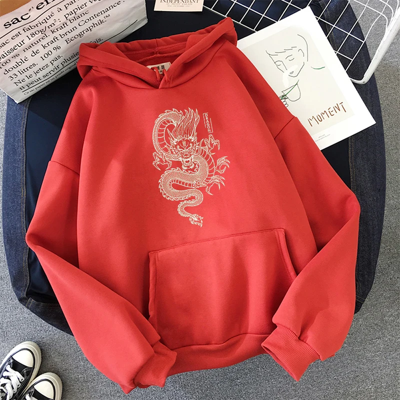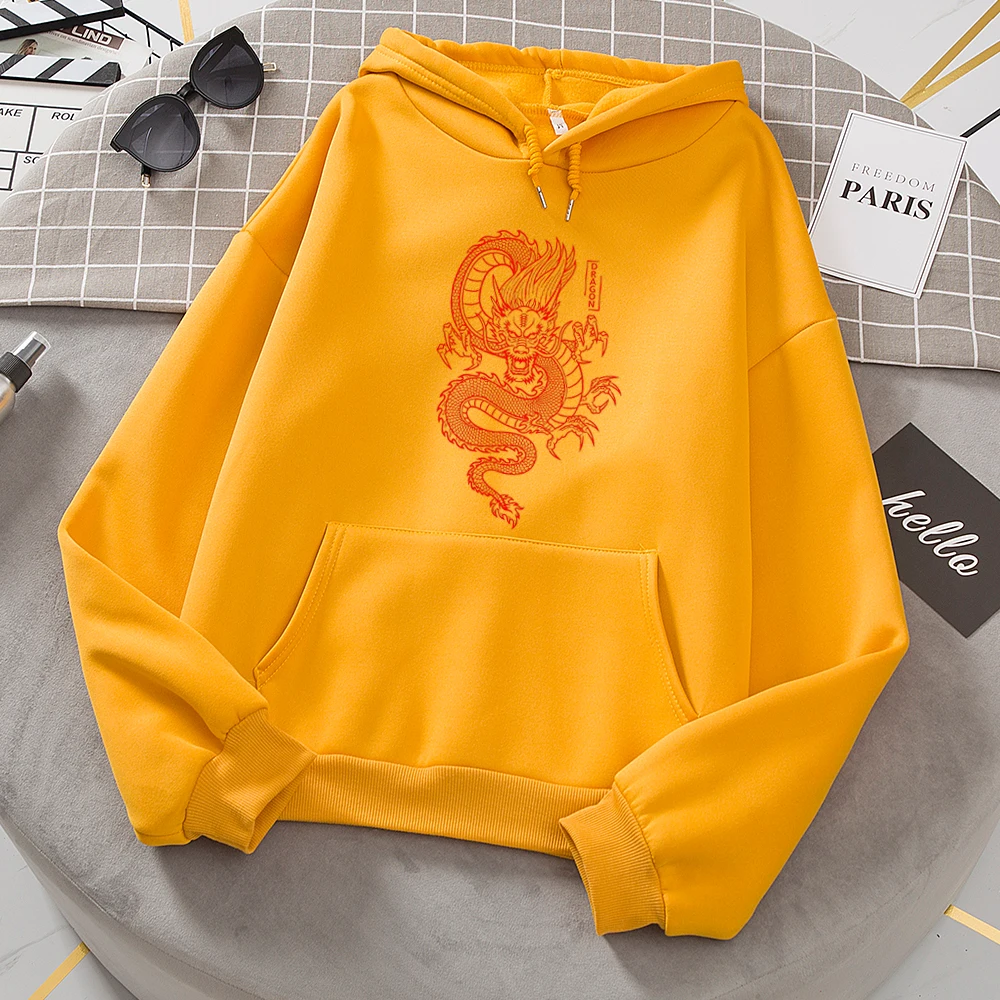 Женская толстовка с капюшоном, зимняя, с принтом китайского дракона