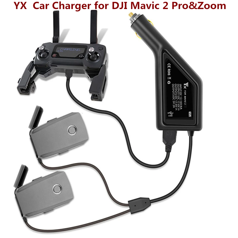Автомобильное зарядное устройство 3 в 1, USB-адаптер, разъем Mavic 2, интеллектуальный концентратор для зарядки нескольких аккумуляторов для DJI Mavic 2 Pro Zoom
