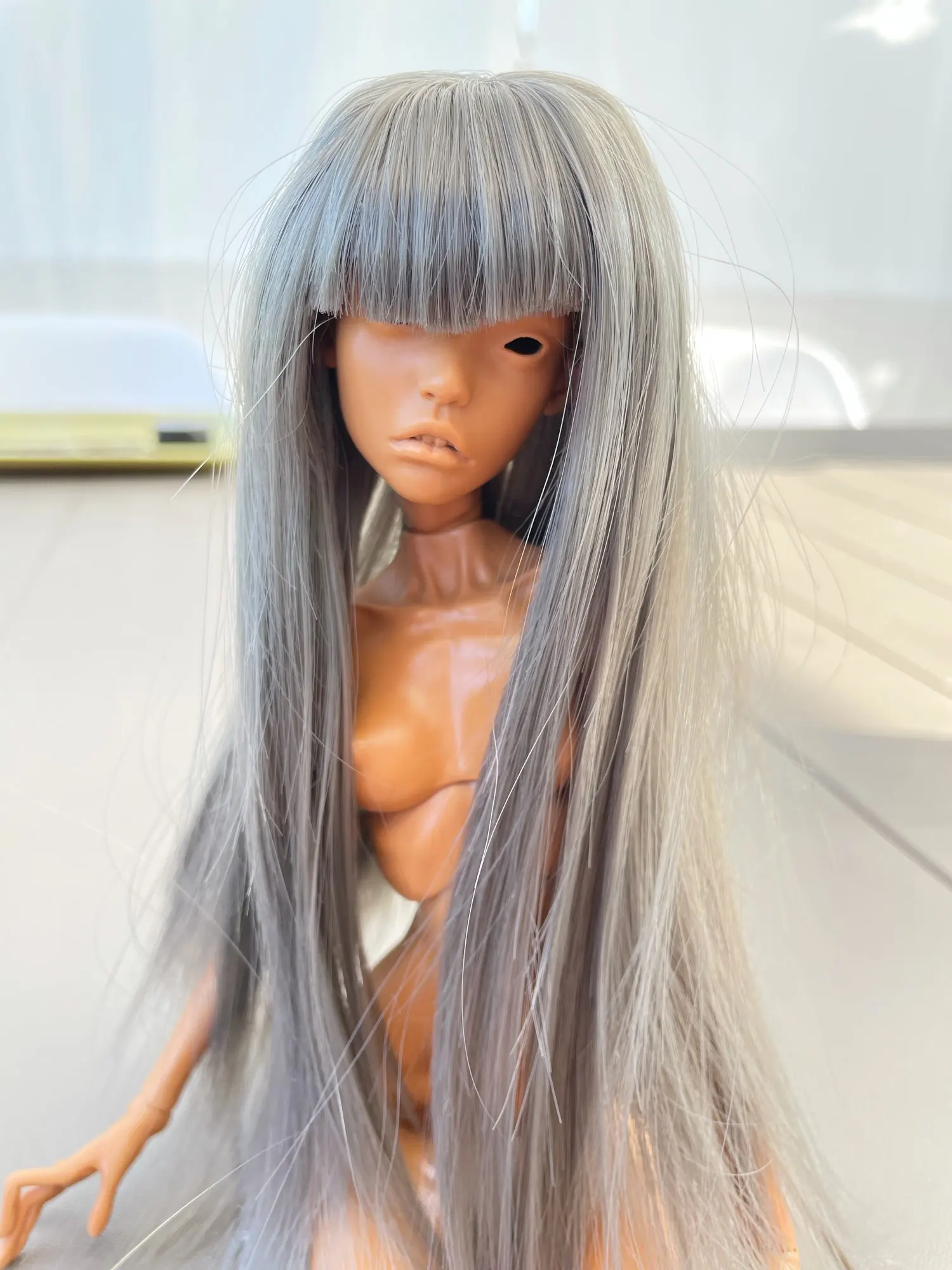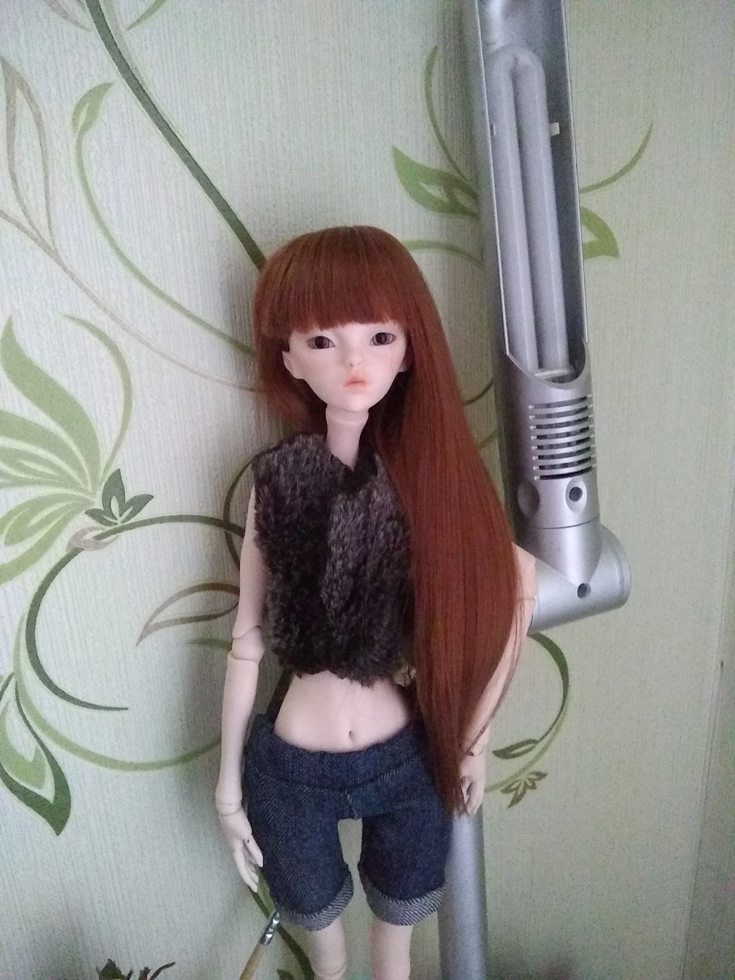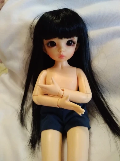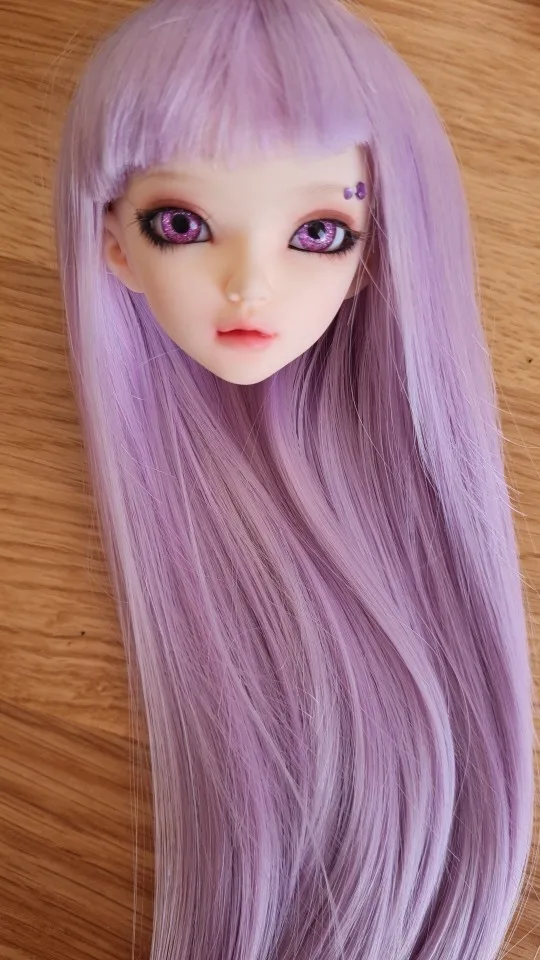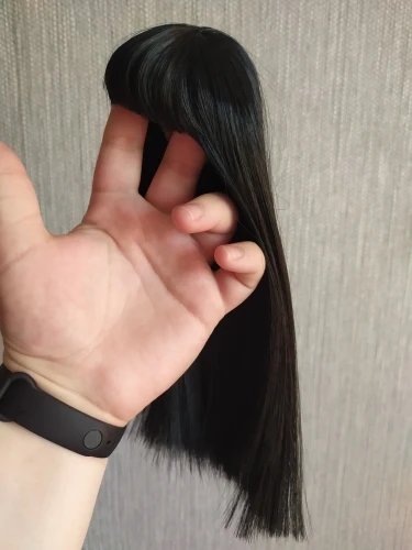 Челка не очень хорошо обрезана, но, как вы видите на фотографиях, она очень длинная. Это suze 1:6, но он маленький для моего Leeke yosd и моего Voljs yosd. Он также не подходит для всех мини-сборов, только те с маленькими головками, такими как Sircca (на моих фотографиях)