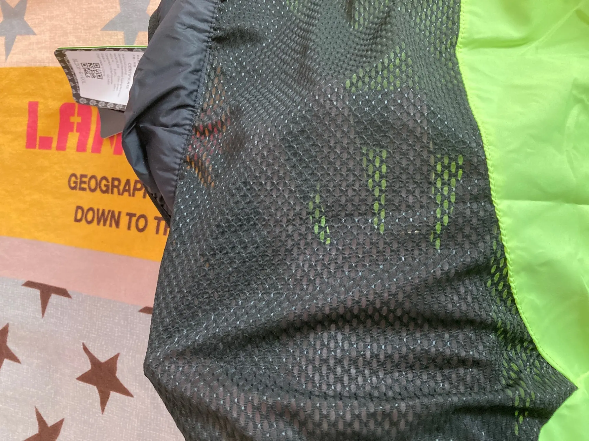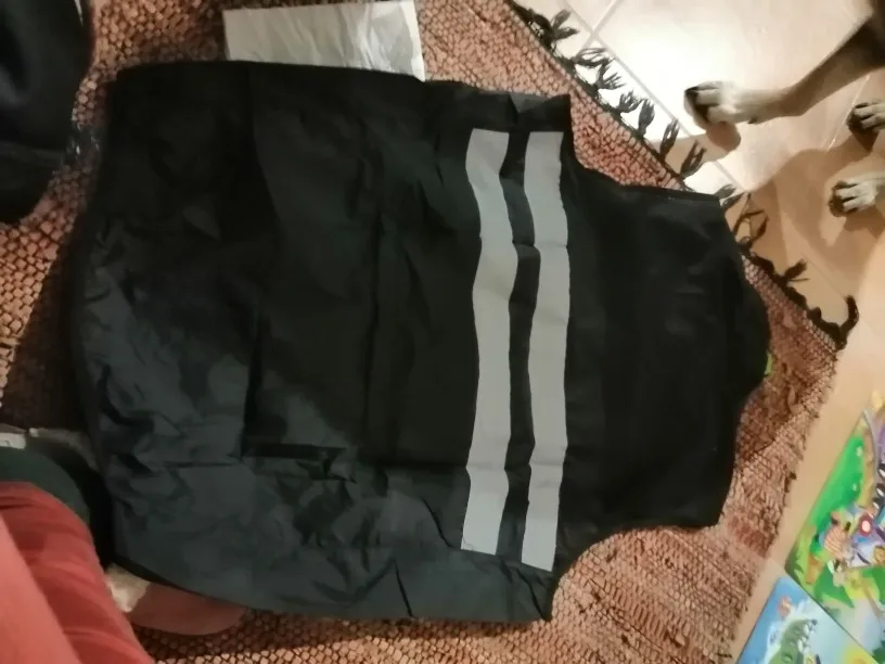 Отправка была быстрой. Это маленький Размер: XL слишком туго для 1m75/85 кг! Воротник эластичный, но очень маленький: его невозможно закрыть. Оранжевый цвет не флуоресцентный, светоотражающие полосы хороши, но сзади их нет! Карман на груди очень высокий.