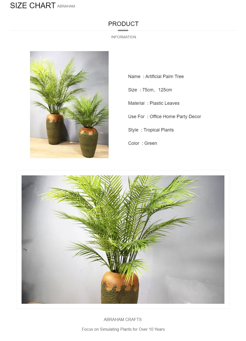 Искусственное пальмовое дерево, 125 см, 13 вилок, большие пластиков...