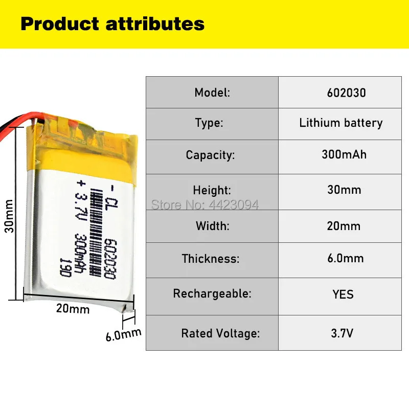 Литий-полимерный аккумулятор 602030 300 мАч 3,7 в, Bluetooth MP3 MP...