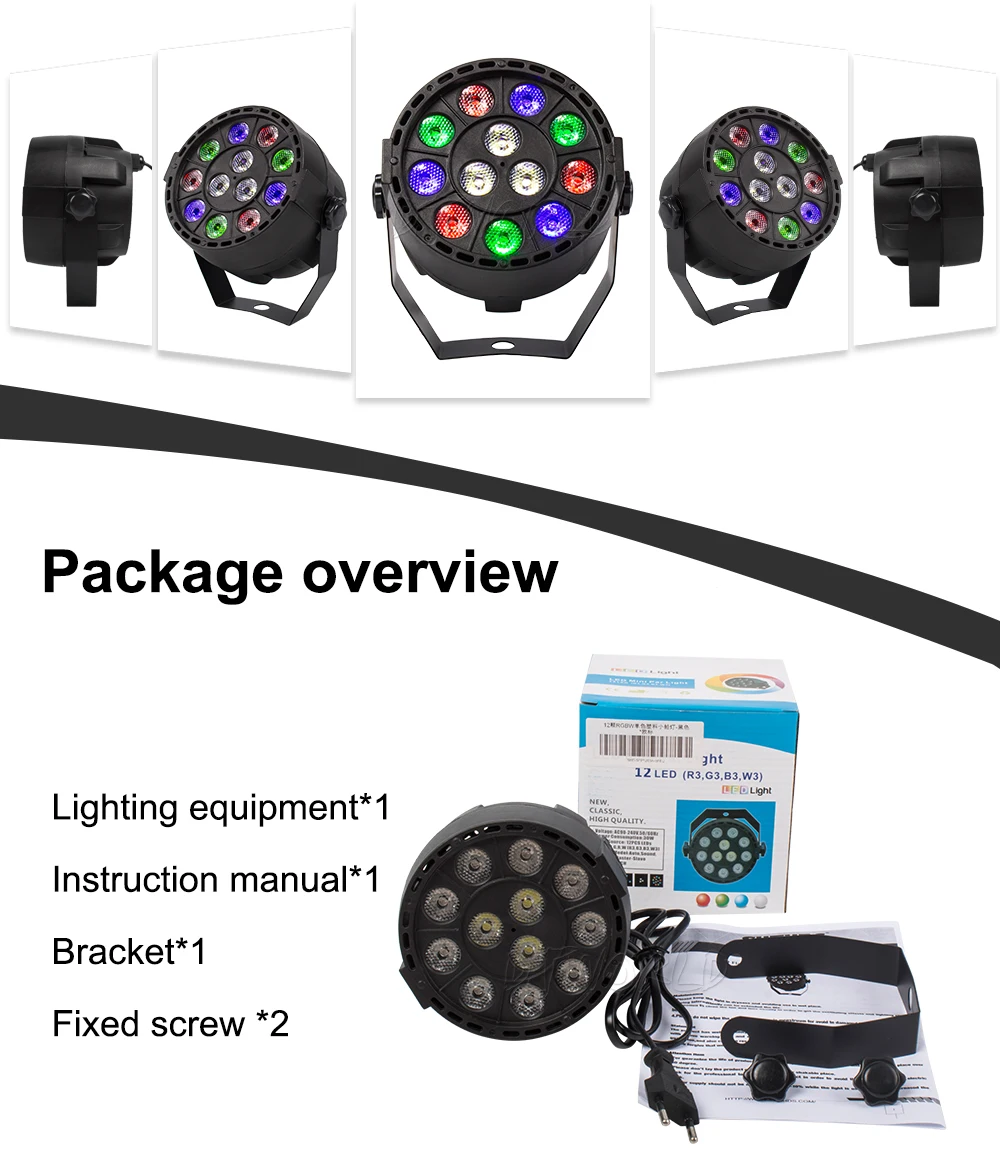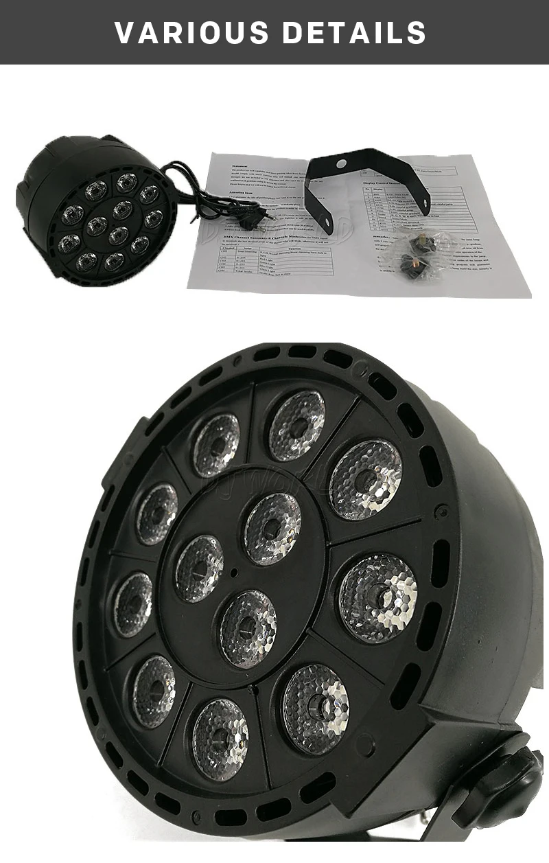Плоский светодиодный прожектор Djworld Par 12x3 Вт, цветной стробоскоп с DMX512 для создания атмосферы дискотеки, диджея, музыки, домашвечерние, танцпола, бара