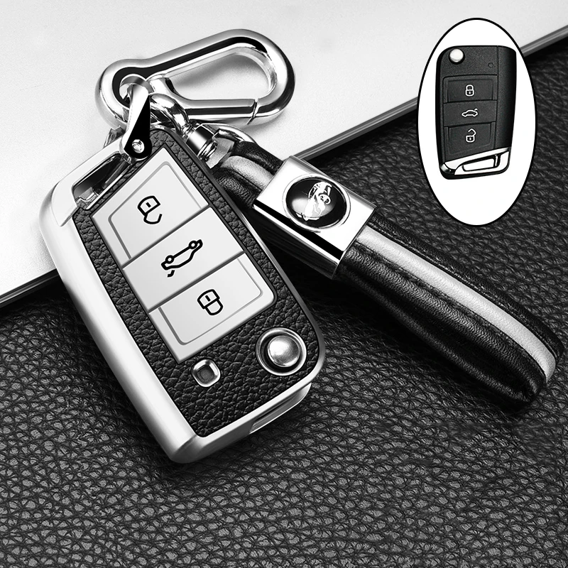 2020 кожа + ТПУ чехол для автомобильного смарт-ключа полный Чехол сумка для Volkswagen Golf 7 mk7 Skoda Octavia A7 брелок аксессуары для автозапчастей