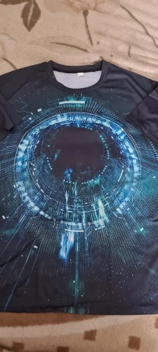 Хорошая футболка. Синтетика, но не пластик-фантастик. К телу приятная, рисунок четкий. Размер подошел четко на мой 50-й XXL сел свободненько.