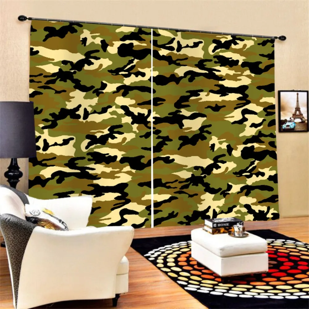 Армейский зеленый Камуфляжный принт, 2 панели, полиэстер, Затемненные Окна, современный декор, занавески для гостиной, спальни, кухни