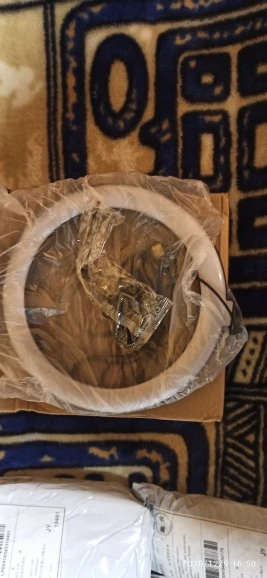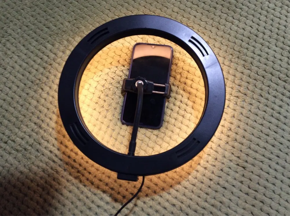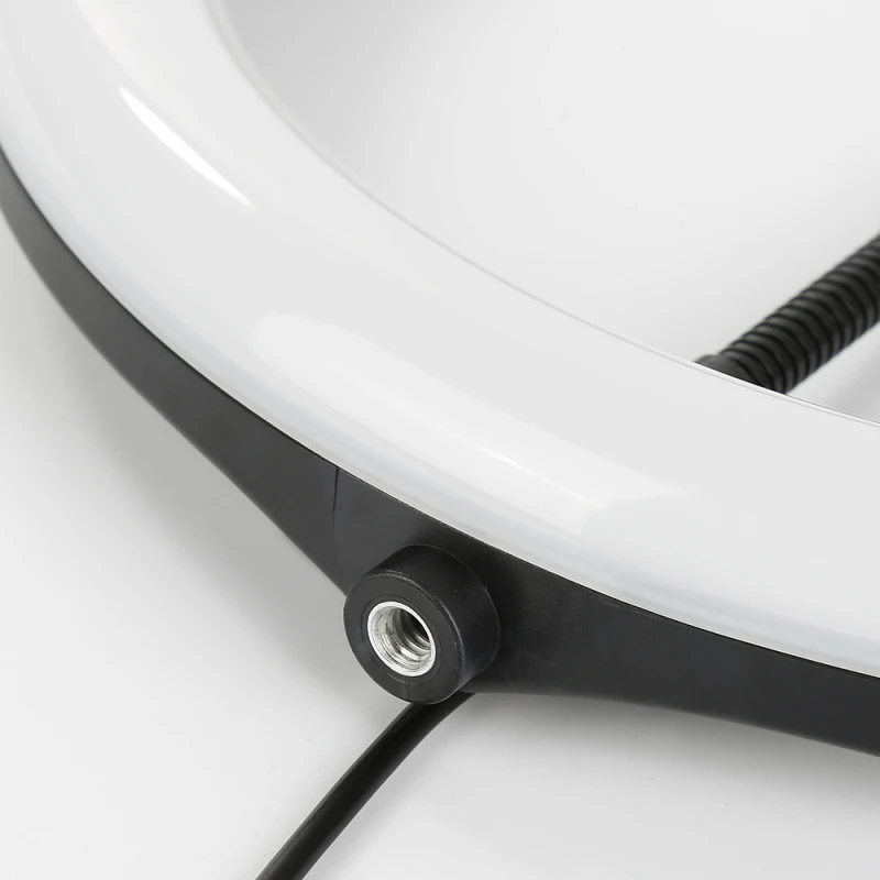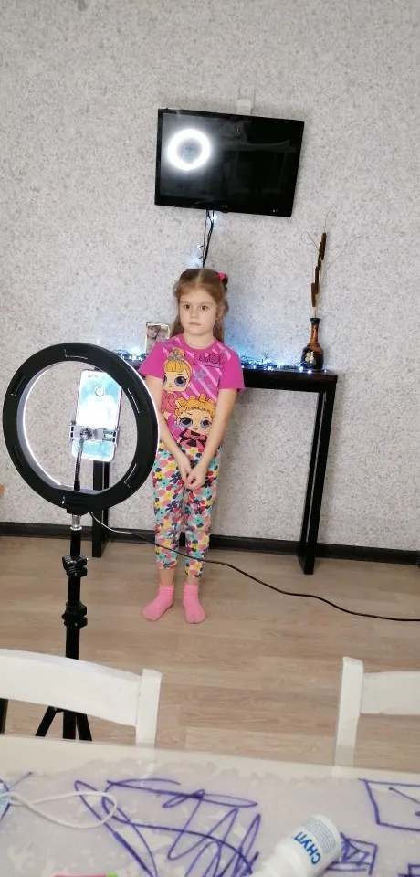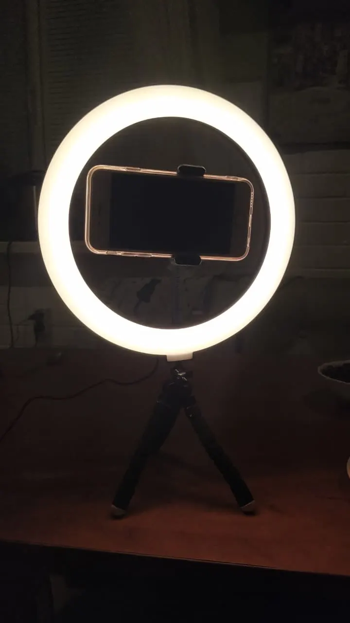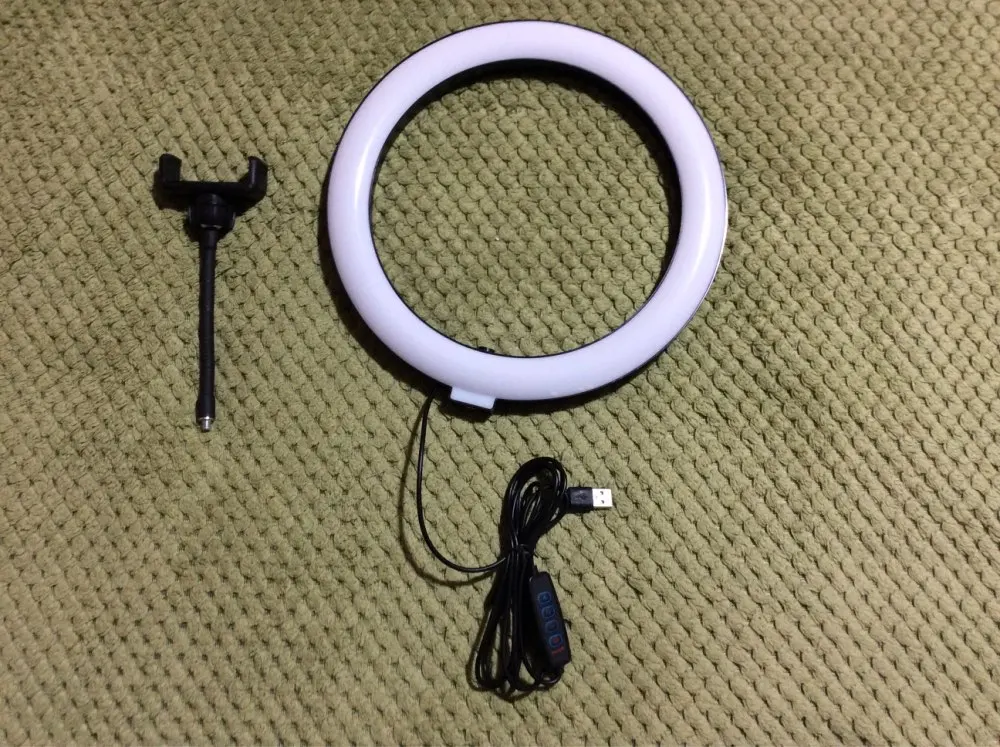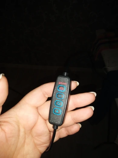 Штука определённо неплохая. Конечно, почта приложила все усилия, чтобы квадратную коробку подогнать к форме лампы - но всё цело и работает. Пластик кажется хлипким, но вроде бы держится всё нормально. Дурацкий гибкий шарнир для держателя телефона: его достаточно сложно изогнуть так, чтобы он расположился по центру и не затенял участки кольца. Впрочем, это мелочи. Надо ещё придумать болтик, чтобы вкручивать в гнездо внутри кольца и крепить видеокамеру. Имеет три цвета - холодный (дневной, порядка 6500К), тёплый (где-то 3000К) и гибридный, плюс десять ступеней яркости. Переключается всё с кнопочного модуля на середине кабеля (типа проходного выключателя). Когда лампа выключена, кнопка ON/OFF подсвечивается синим. Сам кабель длиннющий, около 185 см. Проверял фотоаппаратом - мерцания на слабых режимах вроде бы нет. Поскольку приходится из-за вируса много работать дистанционно - вещь очень нужная. Пять баллов. К тому же быстренько (за 20 дней) привезли в постамат.