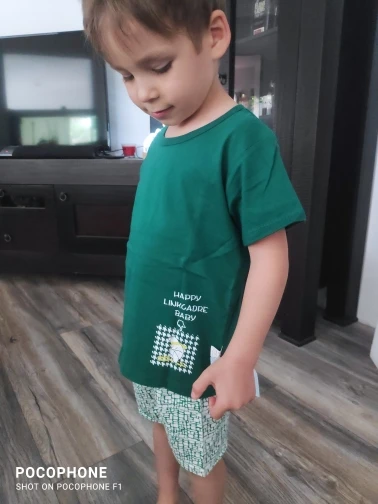 Очень классный костюм. Мягкая ткань. Непонравилось то, что на футболке наклейка, а не текстиль. При стирке облезет.