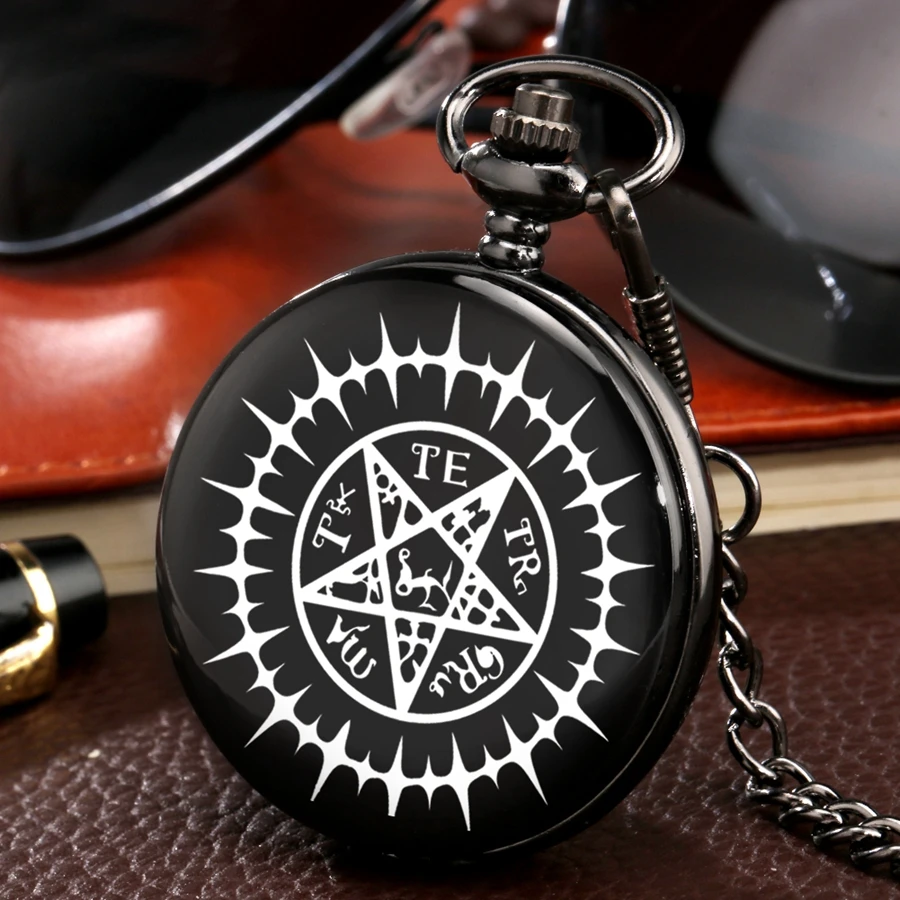 Винтажные кварцевые карманные часы с гладкой черной подвеской