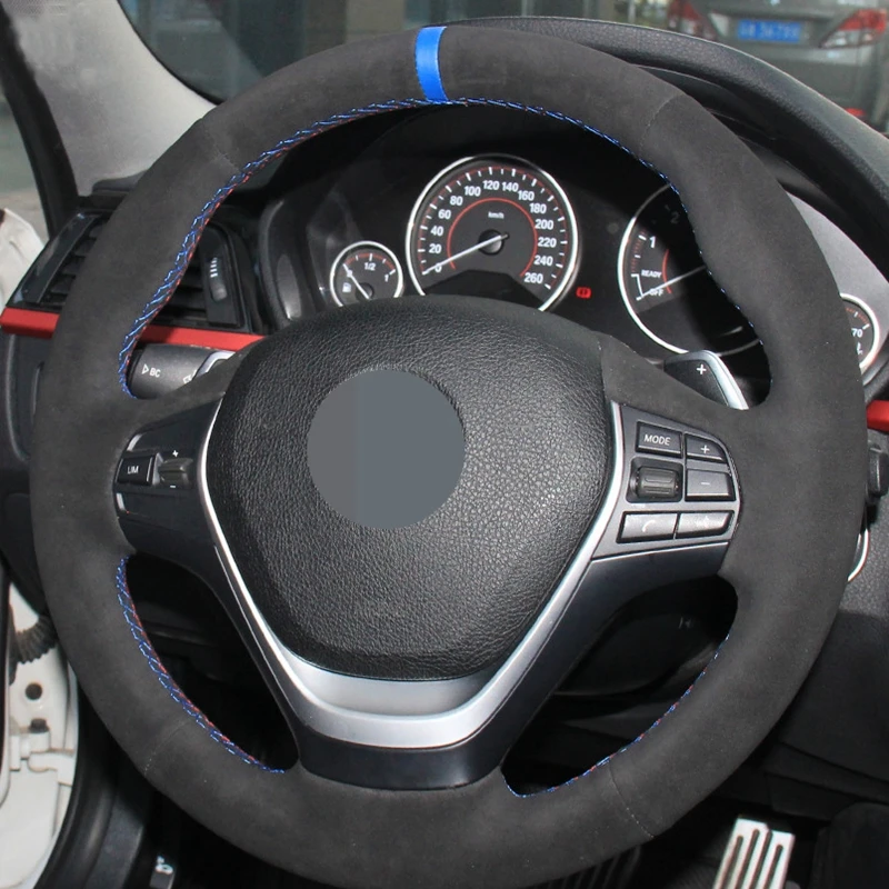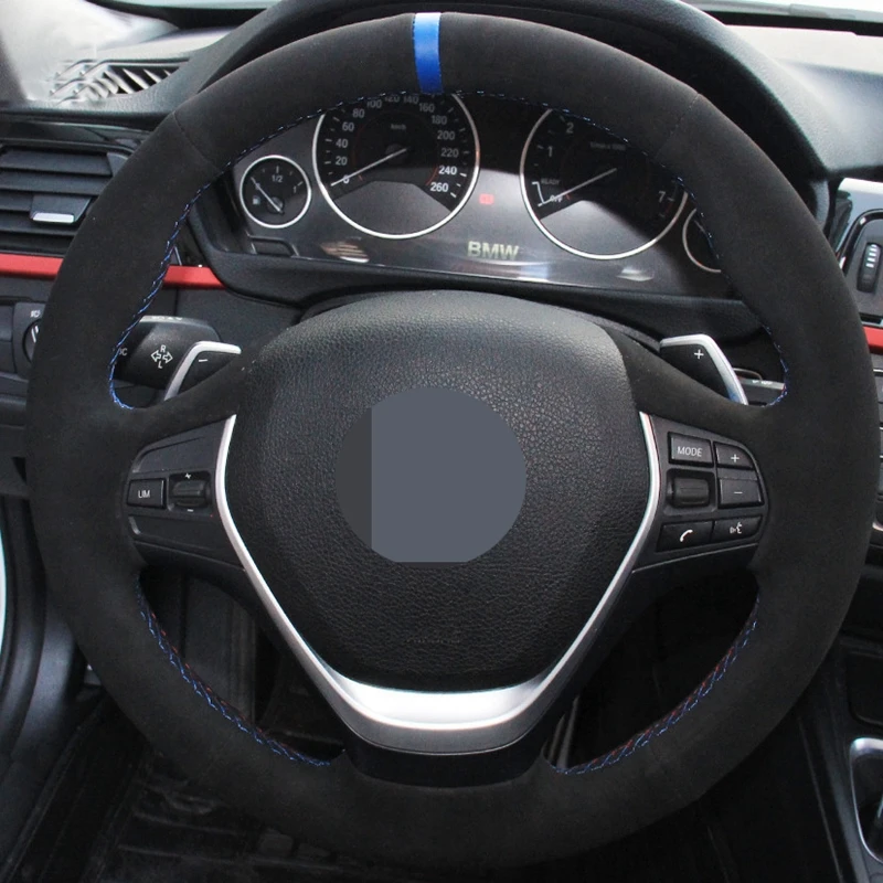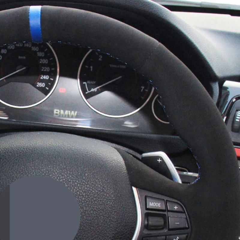 Сделай сам из мягкой черной замши синего цвета маркер чехол рулевого колеса автомобиля для BMW F20 2012-2018 F45 2014-2018 F34 F31 F30 2013-2017 F32 F33 F36