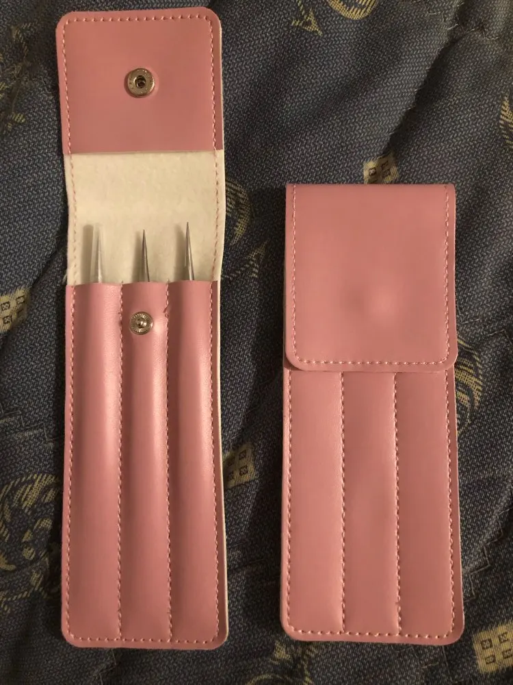 Товар пришёл очень быстро, хорошо упакованный. Очень понравились чехлы, хорошо сшиты, швы не торчат, углы и стороны ровные. Единственное что смущает, так это то, что пинцет в него погружается с головой, а я привыкла к другим. Но чем больше пинцет спрятан, тем лучше он защищён, надо только поднаровится, чтобы доставать. Но если хранить в них те, которыми не пользуешься прямо сейчас подходят идеально. Рекомендую магазин, не первый раз у них заказываю.