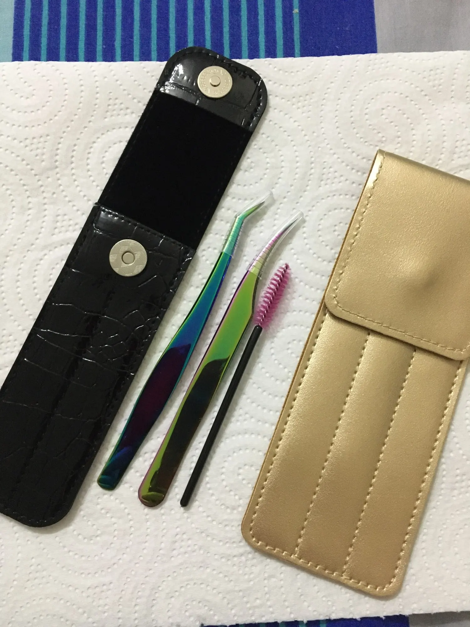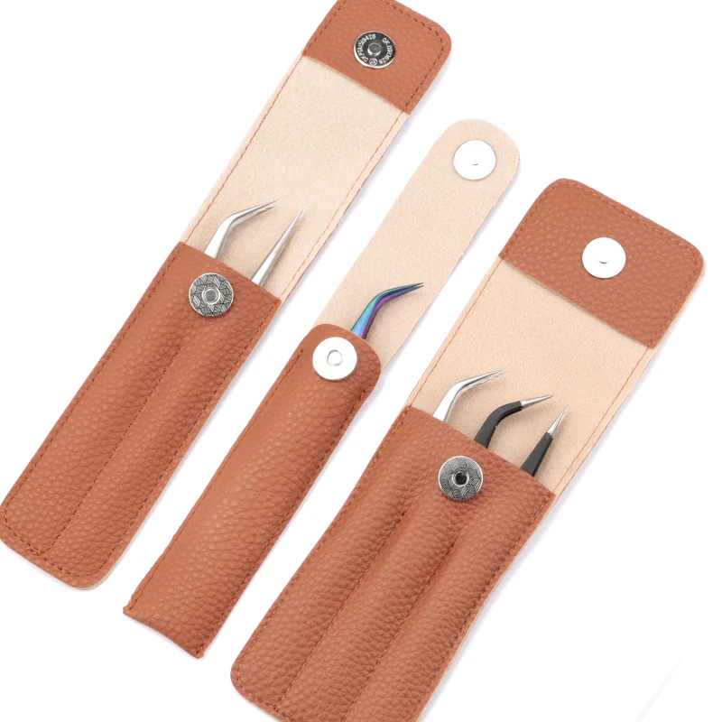 Специальные пинцеты для наращивания ресниц, кожаный чехол, профессиональная сумка для хранения пинцетов, Комплект ресниц, портативные безопасные инструменты для макияжа