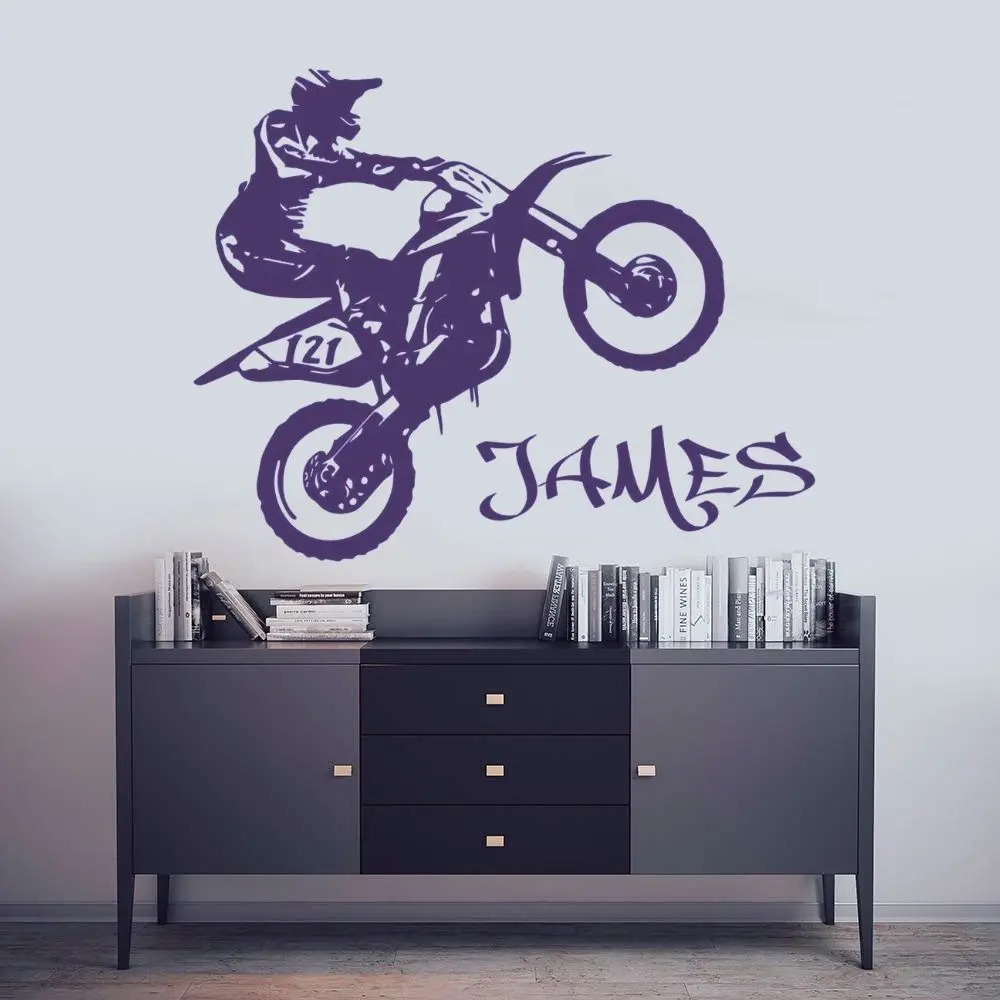 Персонализированные именные настенные наклейки для мотокросса для дома и дома, съемные украшения гаража A002530
