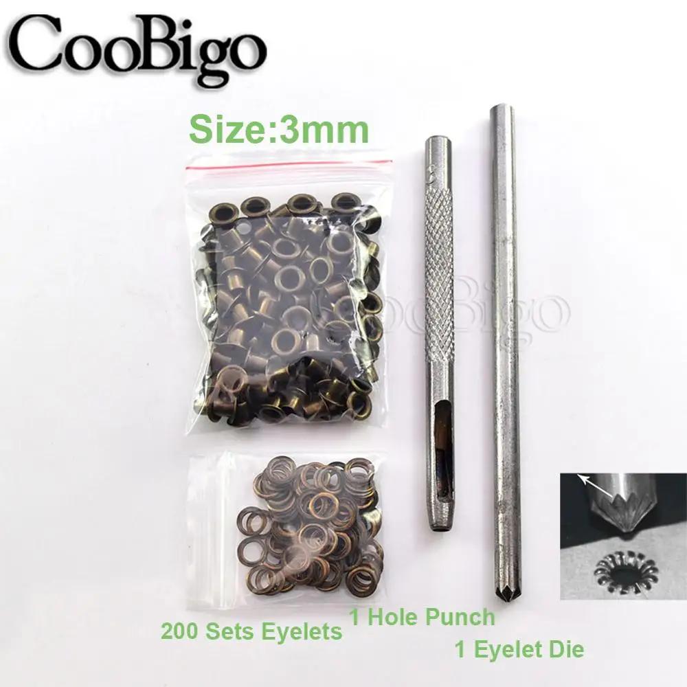 1 Набор =200 шт. античная латунь ушко + 200 шт. втулка + 1 шт. Дырокол + 1 набор пробойников