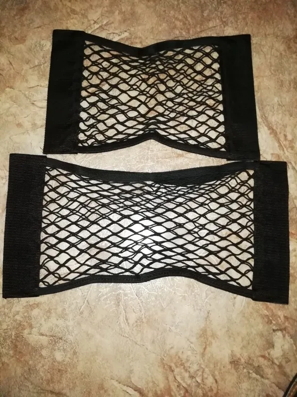 сетки классные, брал две на 40 и 50, прилепил на спинки задних сидений. С дапинки у меня 60см и 40см, т.к. сетки хорошо тянутся на50 подошла как к себе домой а вторую нужно было брать на 30. Сетками доволен, рекомендую.