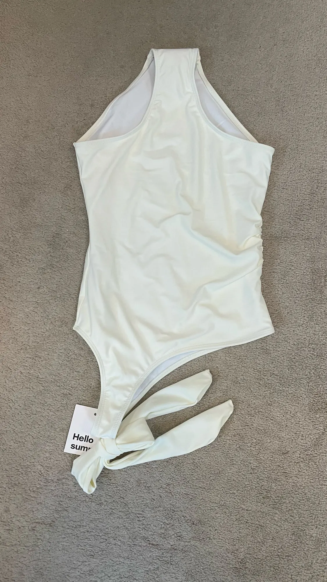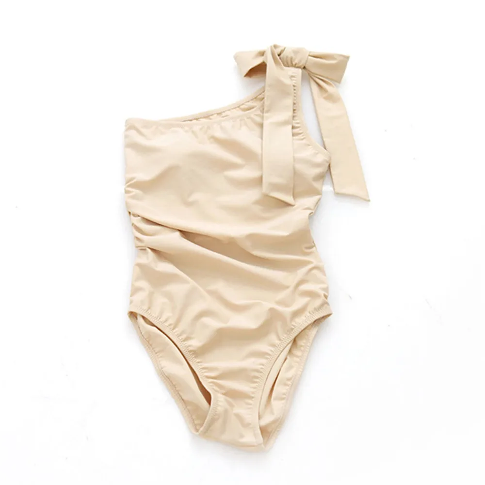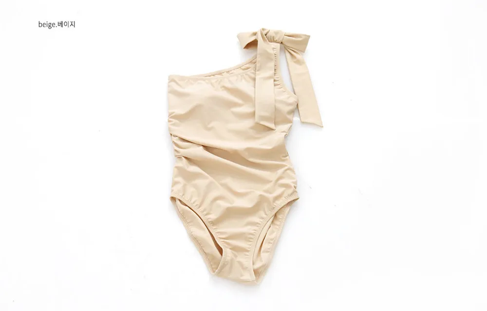Сексуальный слитный купальник на одно плечо, Женская однотонная одежда для плавания, монокини с бантом, купальник с пуш-апом, плиссированное трикини, купальный костюм белого цвета