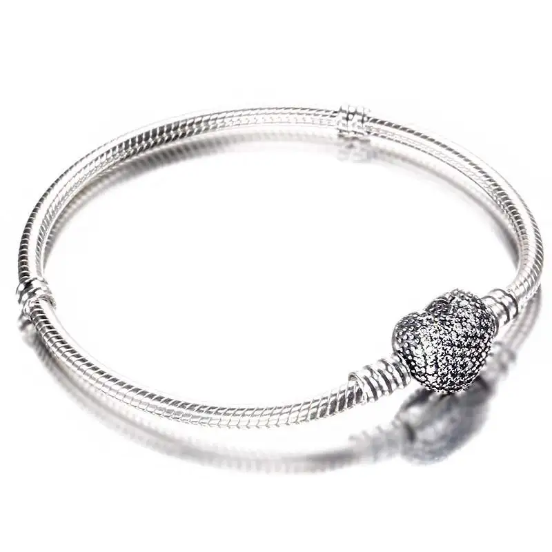 Романтичный оригинальный серебряный браслет в форме сердца с цепочкой в виде змеи для женщин, брендовый браслет и браслет, сделай сам, ювелирное изделие, подарок