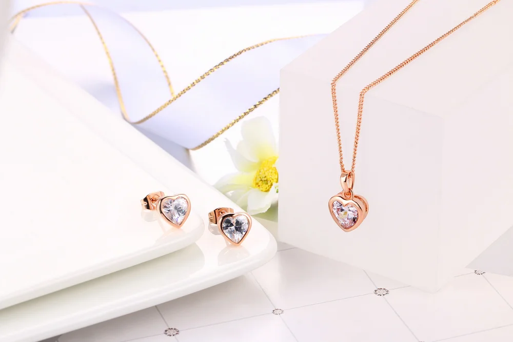 Высокое качество сердце Кристалл розовое золото и серебро цвет ювелирные изделия ожерелье серьги наборы сделаны с австрийскими кристаллами 281 ZYS321