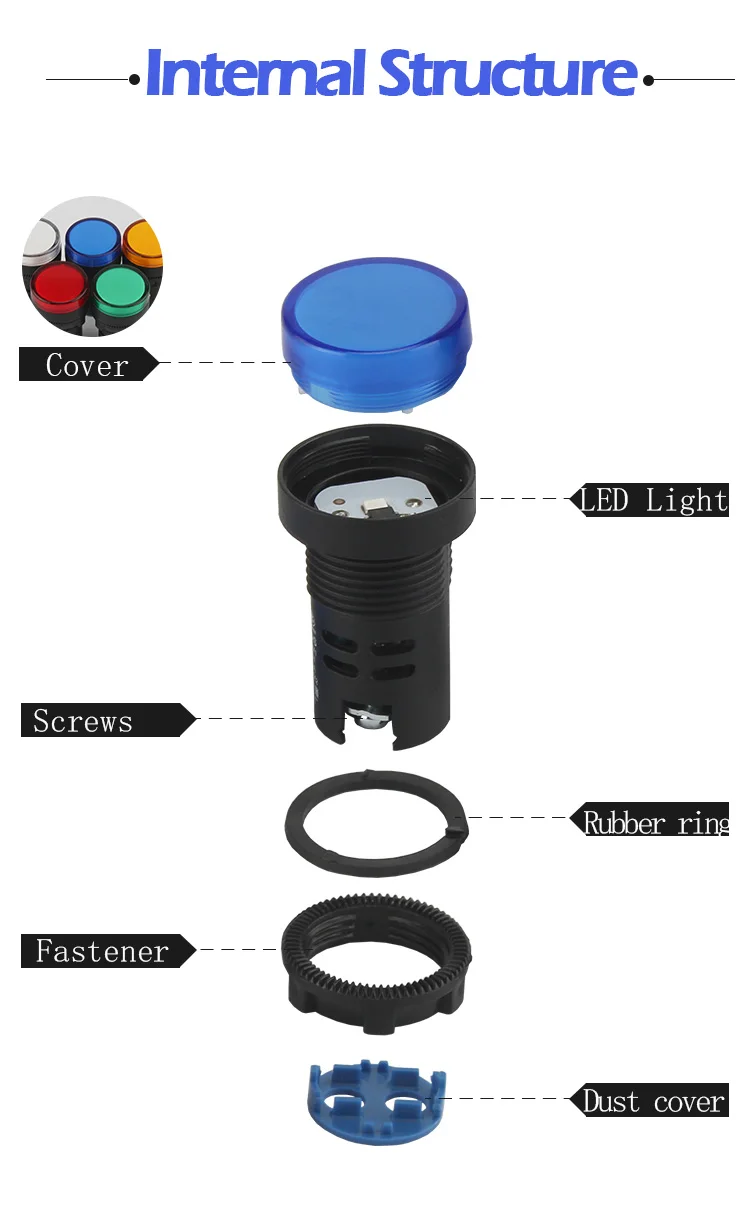 1 шт., светодиодный индикатор питания, 22 мм, 12 В, 24 В, 220 В, 380 В