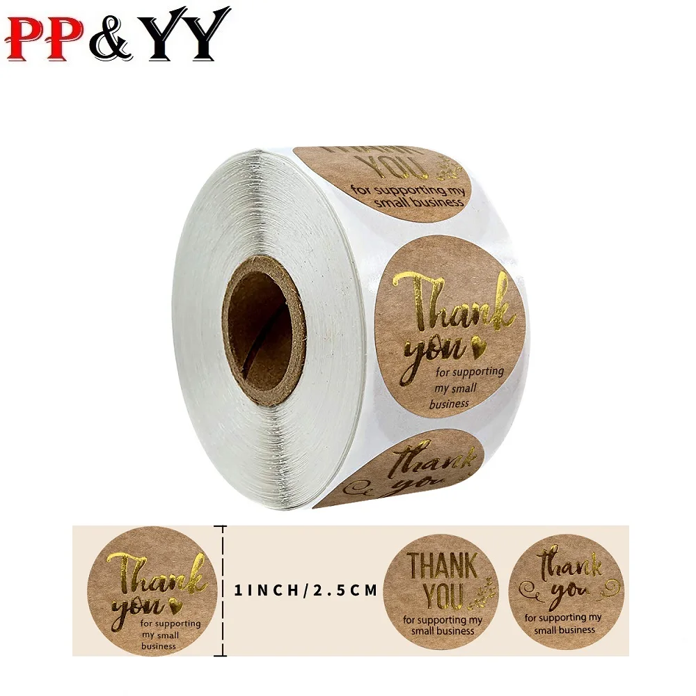 500 шт., Золотая фольга, 2,5 см, спасибо, наклейки из крафт-бумаги,...