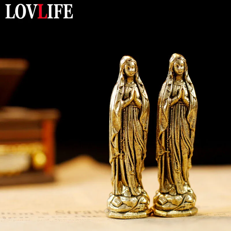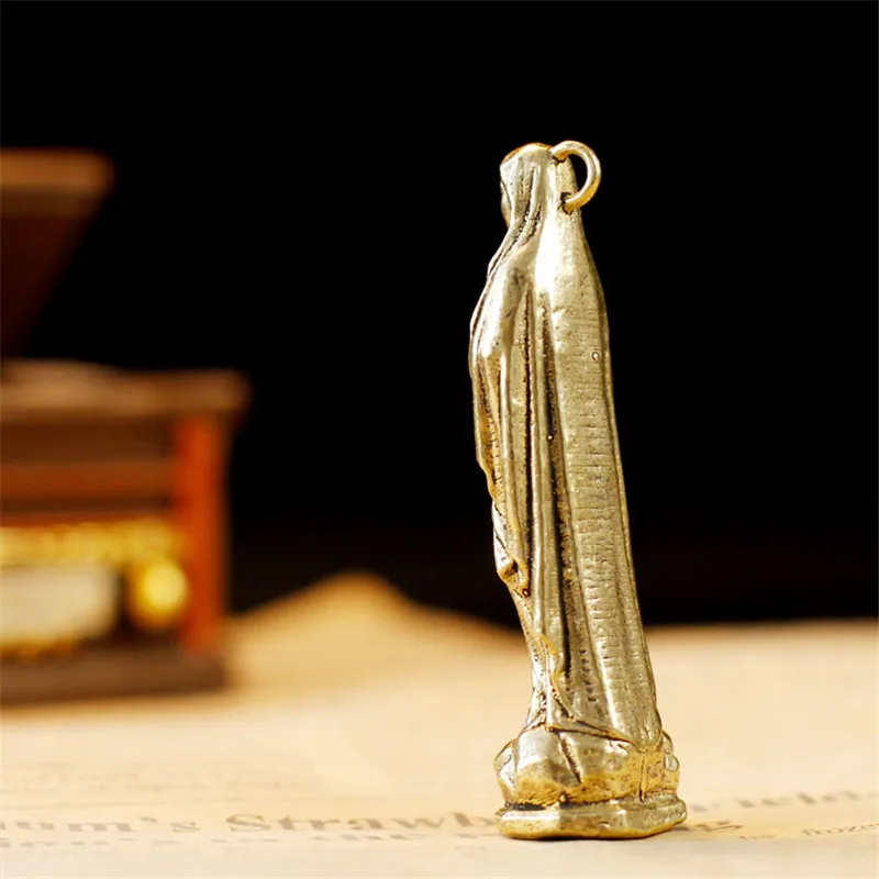 Винтажные латунные фигурки Пресвятой Девы Марии Подвески с цепочками Брелоки для ключей Святой матери Будды подвесные ювелирные изделия брелоки подвески