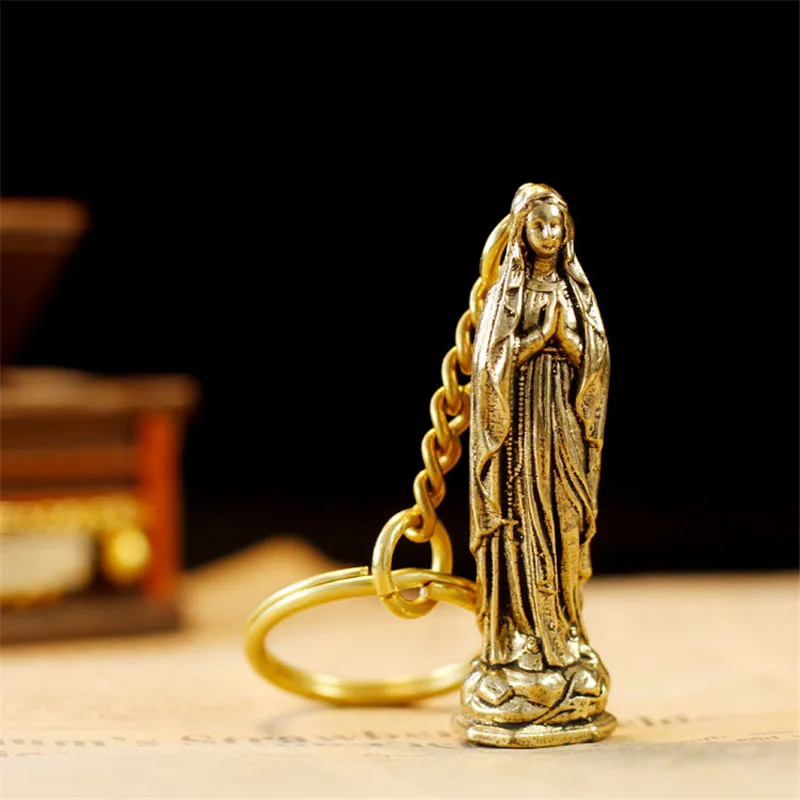 Винтажный латунный Брелок с фигуркой Богородицы, подвеска на цепочке для ключей, подвеска на цепочке с изображением Святой матери, Будды, ювелирные изделия