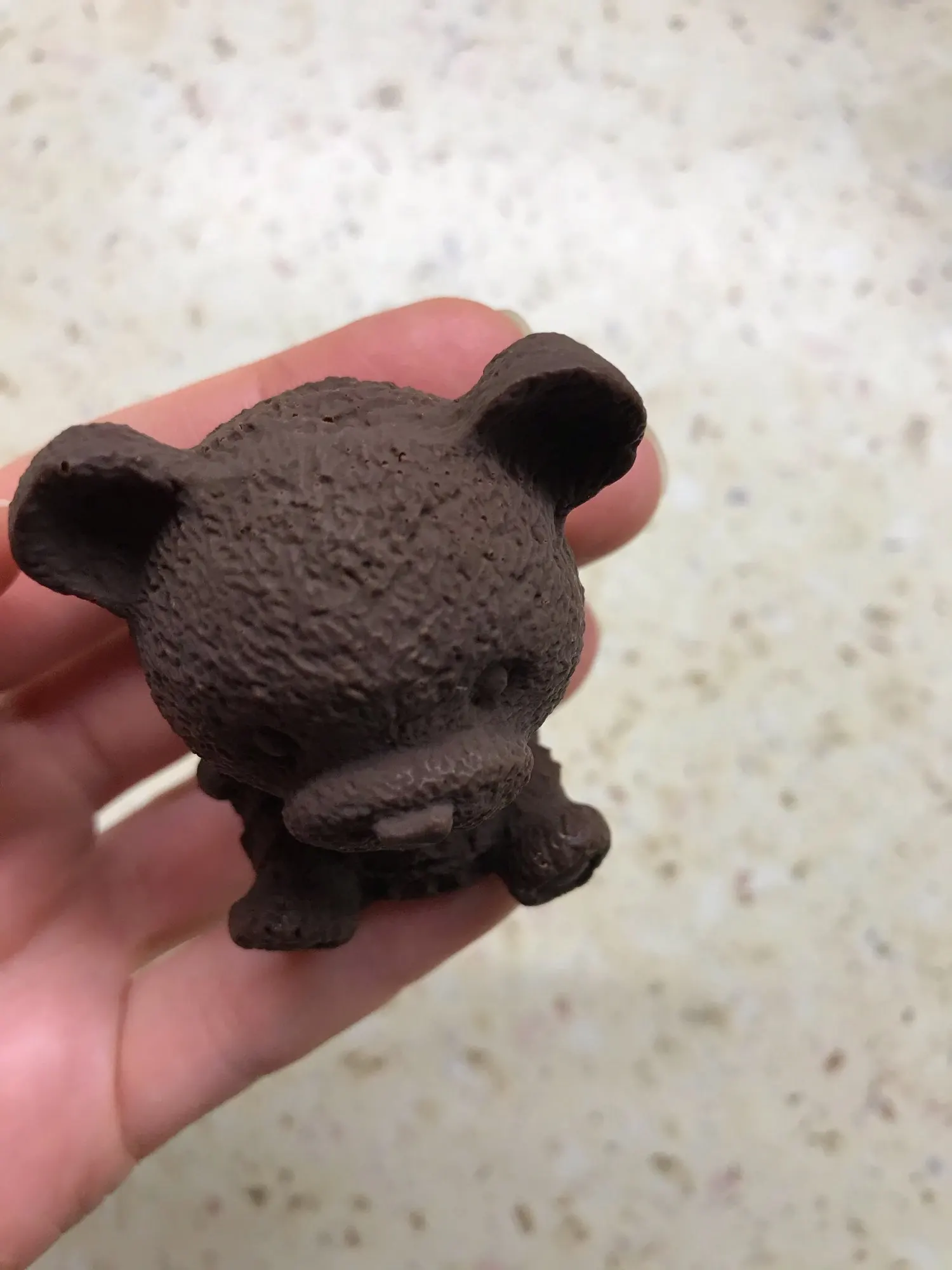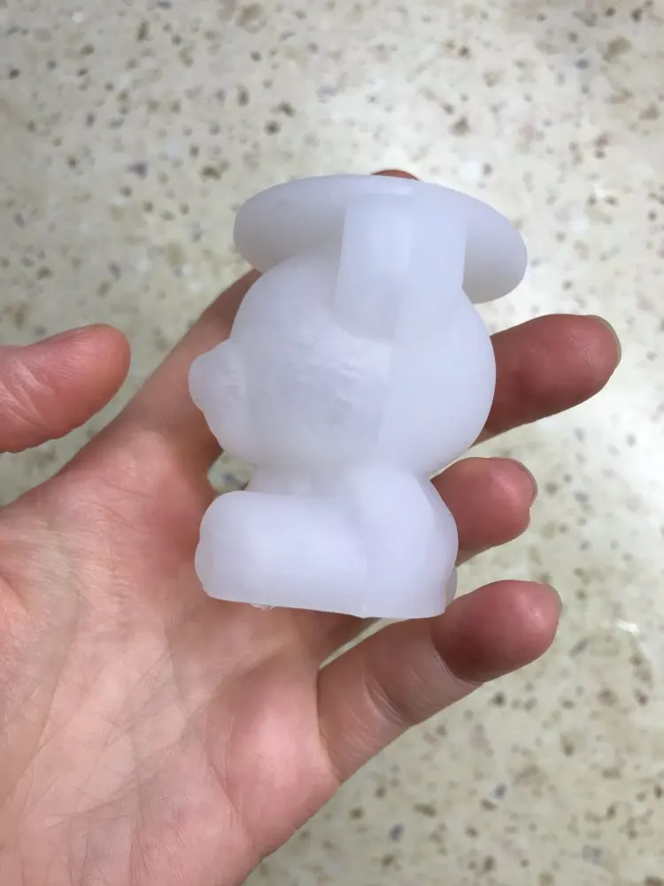 Отвратительный силикон. Очень тонкий. Вот вот разорвётся. У медведя на голове проплешина. Неплохо было бы компенсировать. Обидно за потраченные деньги.
